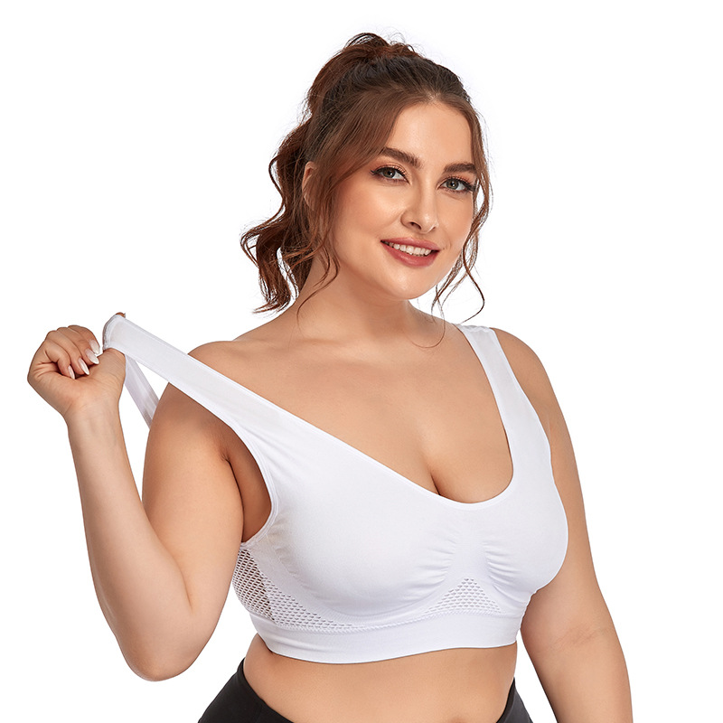 유럽과 미국 크로스 보더 플러스 사이즈 새로운 중공 메쉬 스포츠 속옷 여성용 No 스틸 링 충격 방지 요가 러닝 스포츠 브라