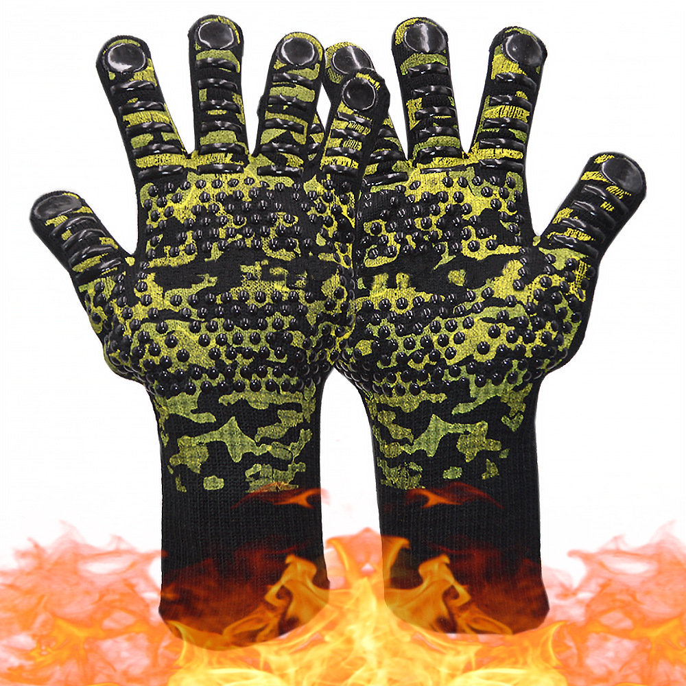 새로운 위장 실크 스크린 고온 내성 장갑 실리콘 전자 레인지 BBQ 단열 바베큐 800 내성 난연제스토어 가기