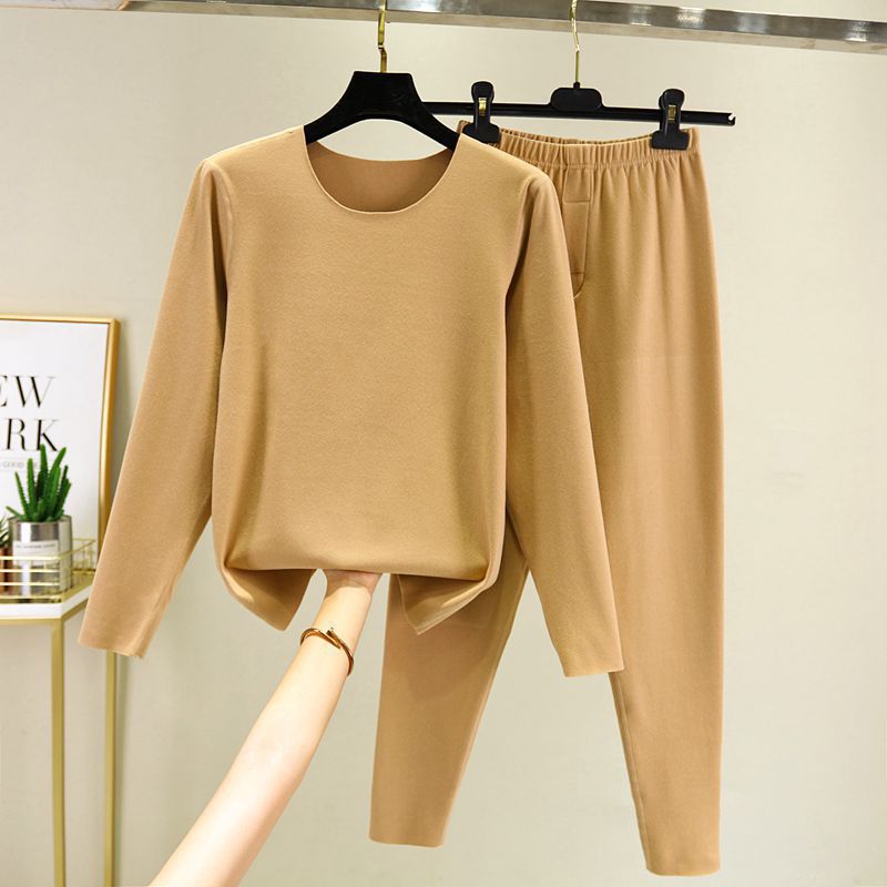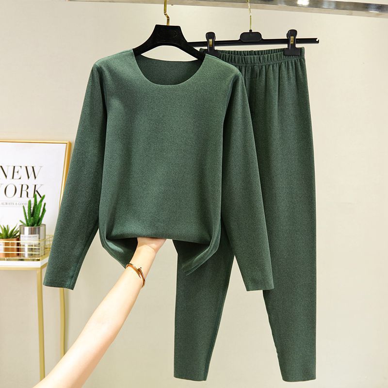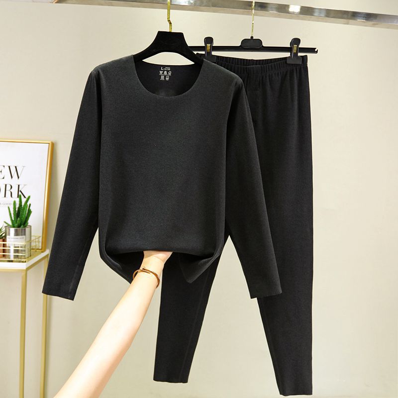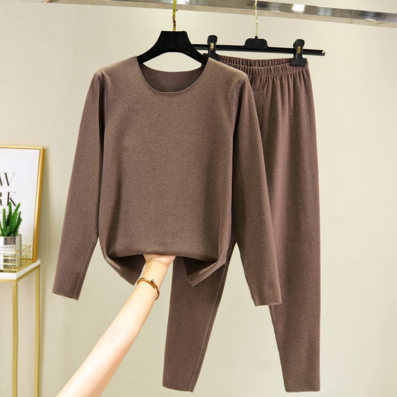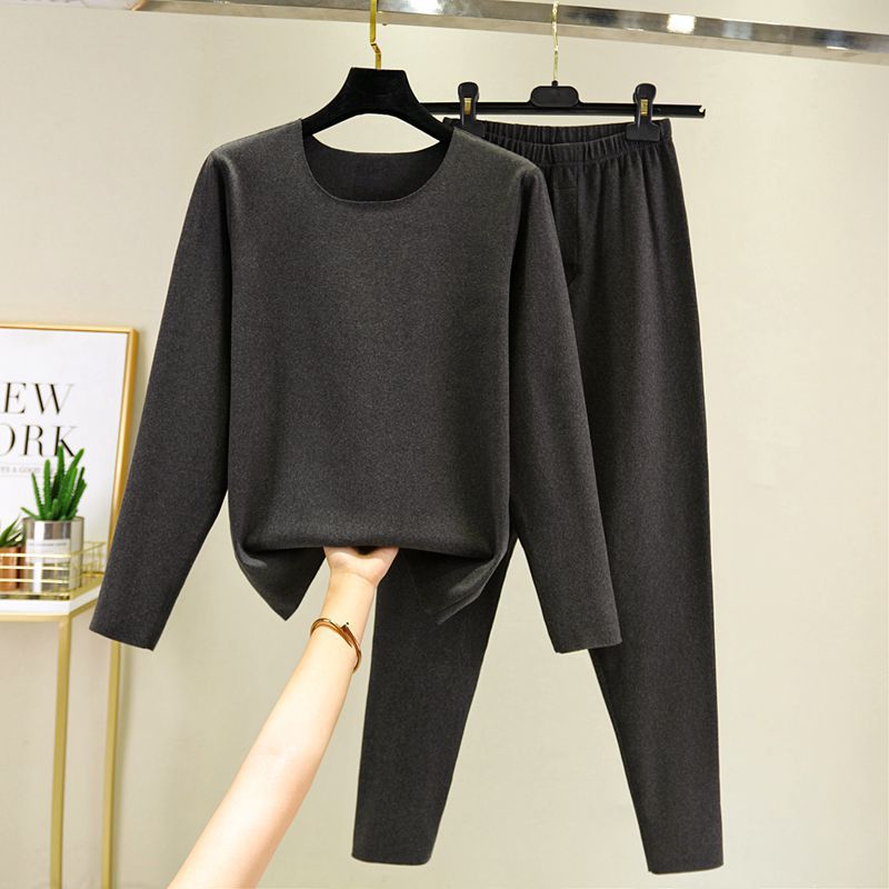 가을과 겨울 남자의 양면 벨벳 따뜻한 세트 한국식 라운드 넥 원활한 스크럽 두꺼운 가을 옷과 바지 투피스 세트