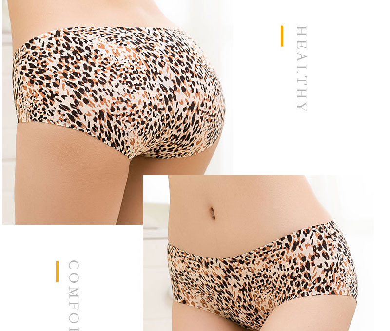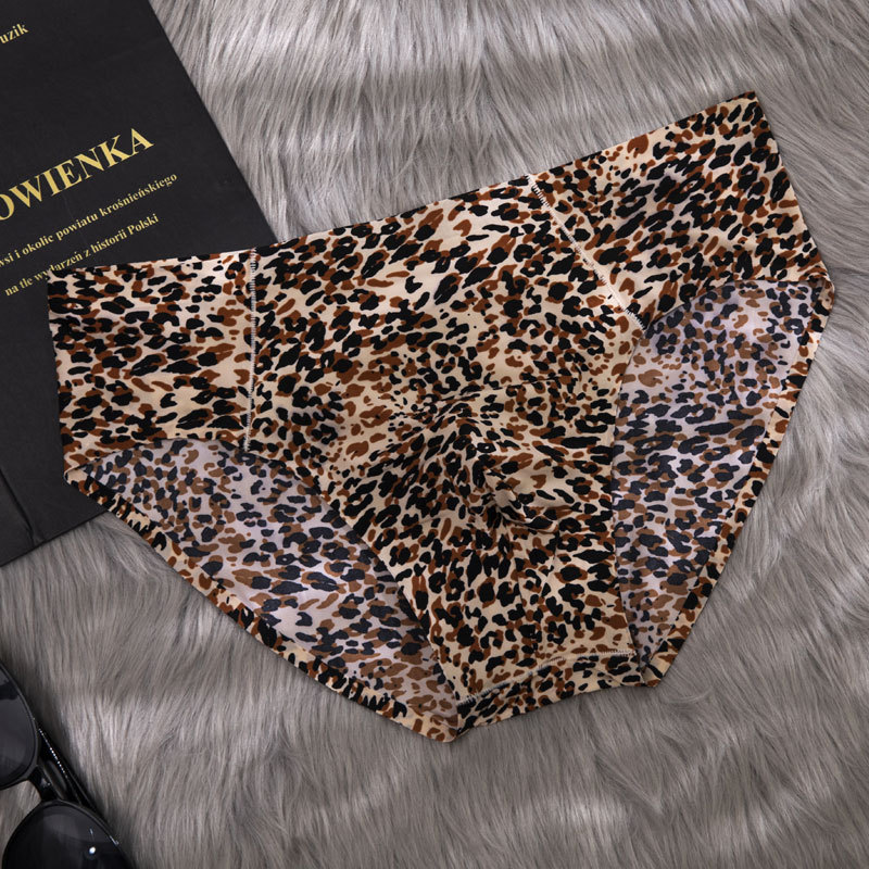 AliExpress 아마존 섹시 아이스 실크 원피스 심리스 표범 속옷 여성용 중간 허리 플러스 사이즈 팬티