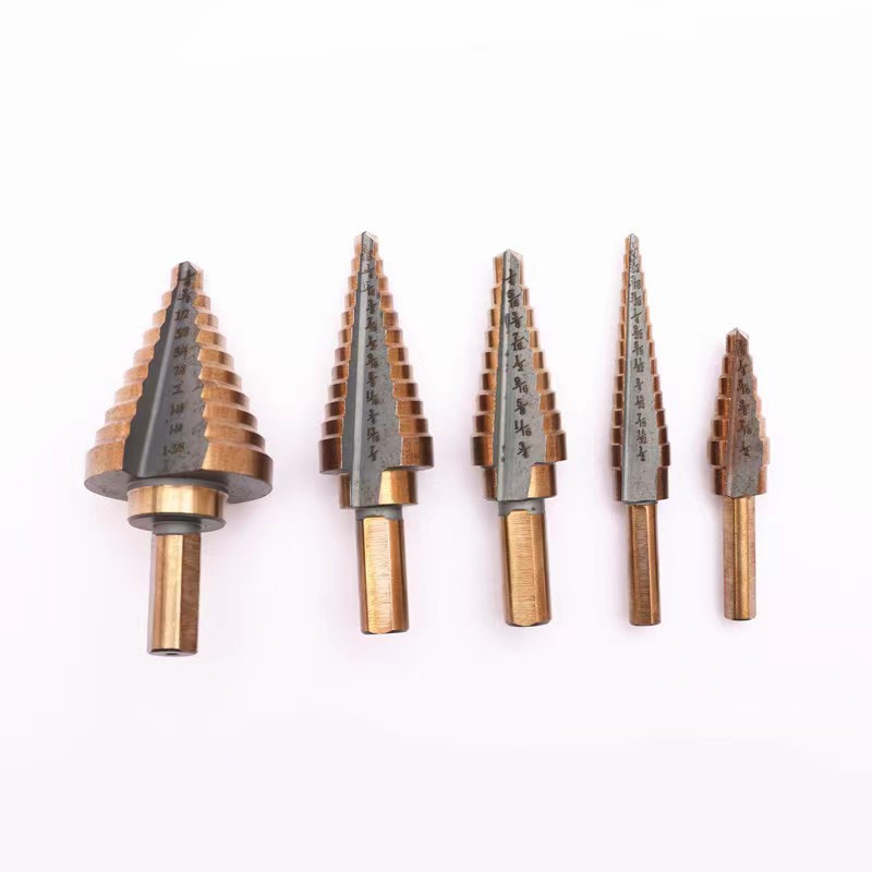5 피스 세트 인치 알루미늄 박스 스텝 드릴 강판 펀치 인치 리머 구운 옐로우 파고다 드릴 비트 스텝 드릴
