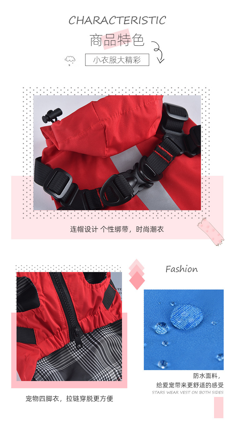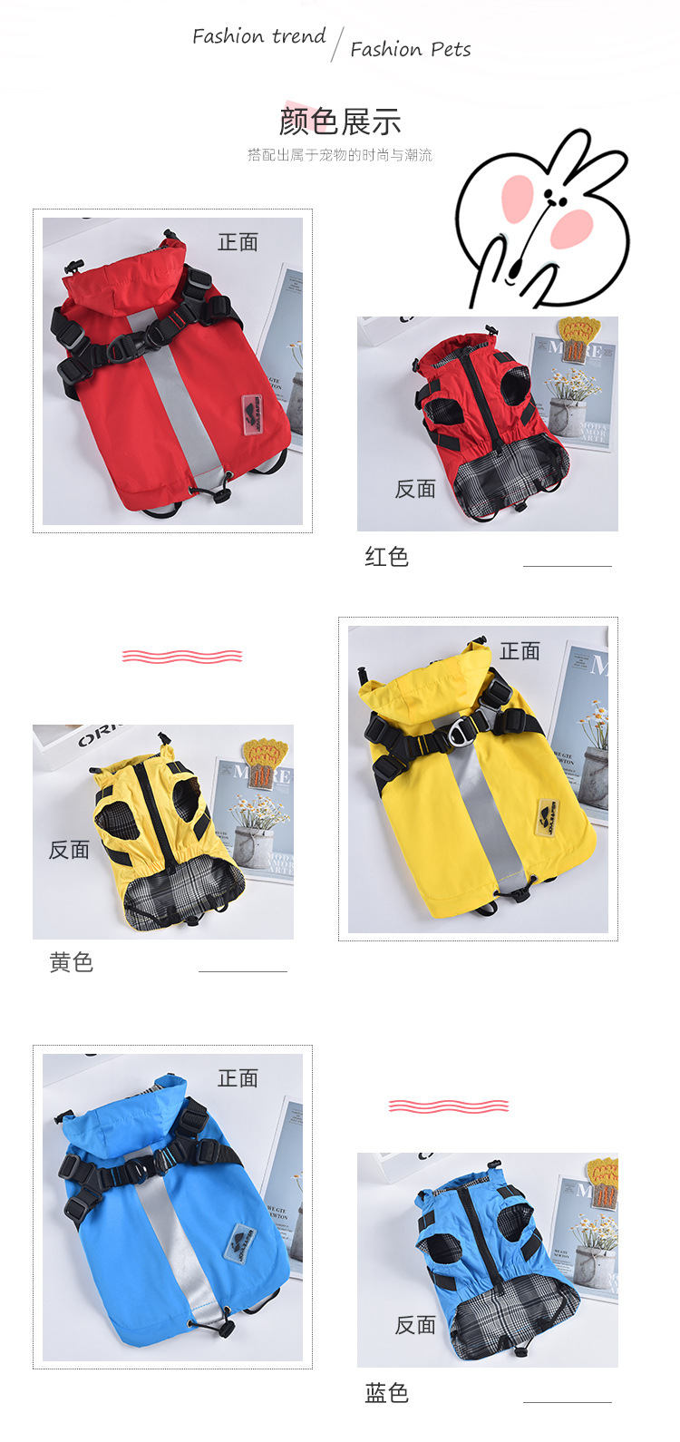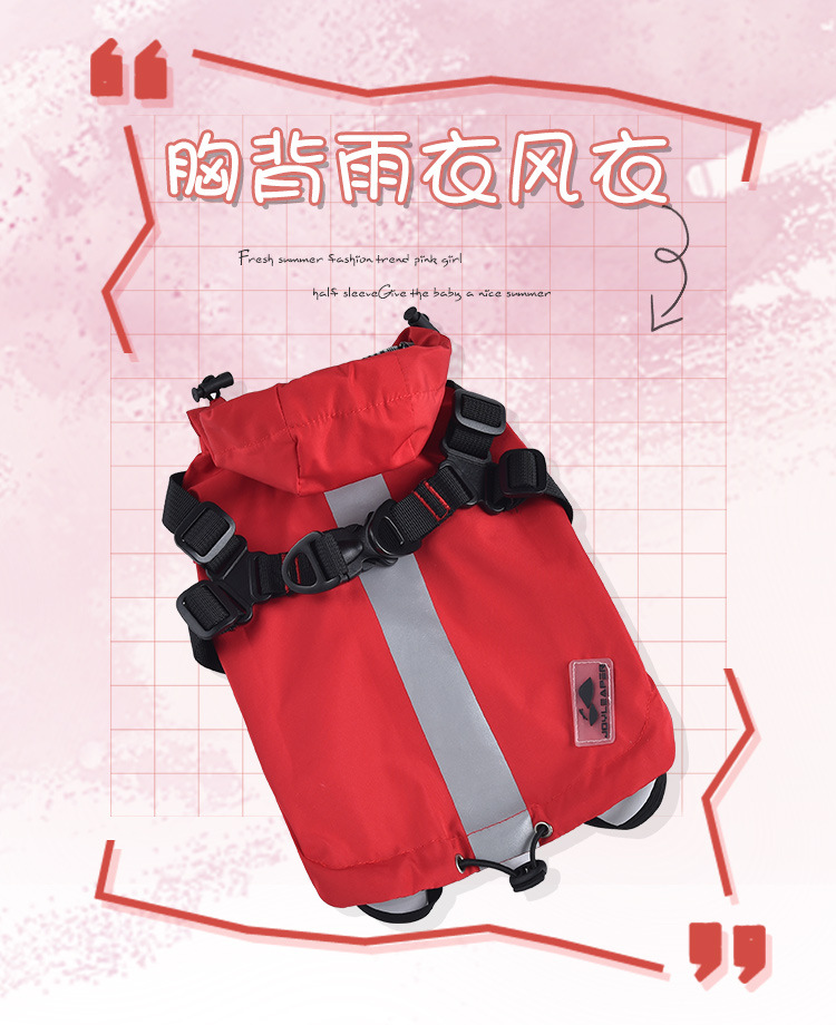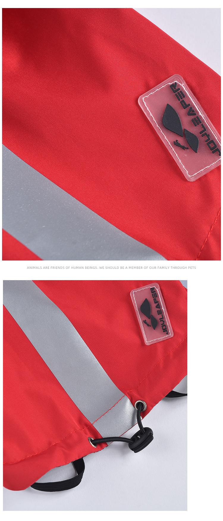 새로운 빨간색 반사 비옷 재고 있음 가슴과 등 모델 두 발 후드 개 옷 도매
