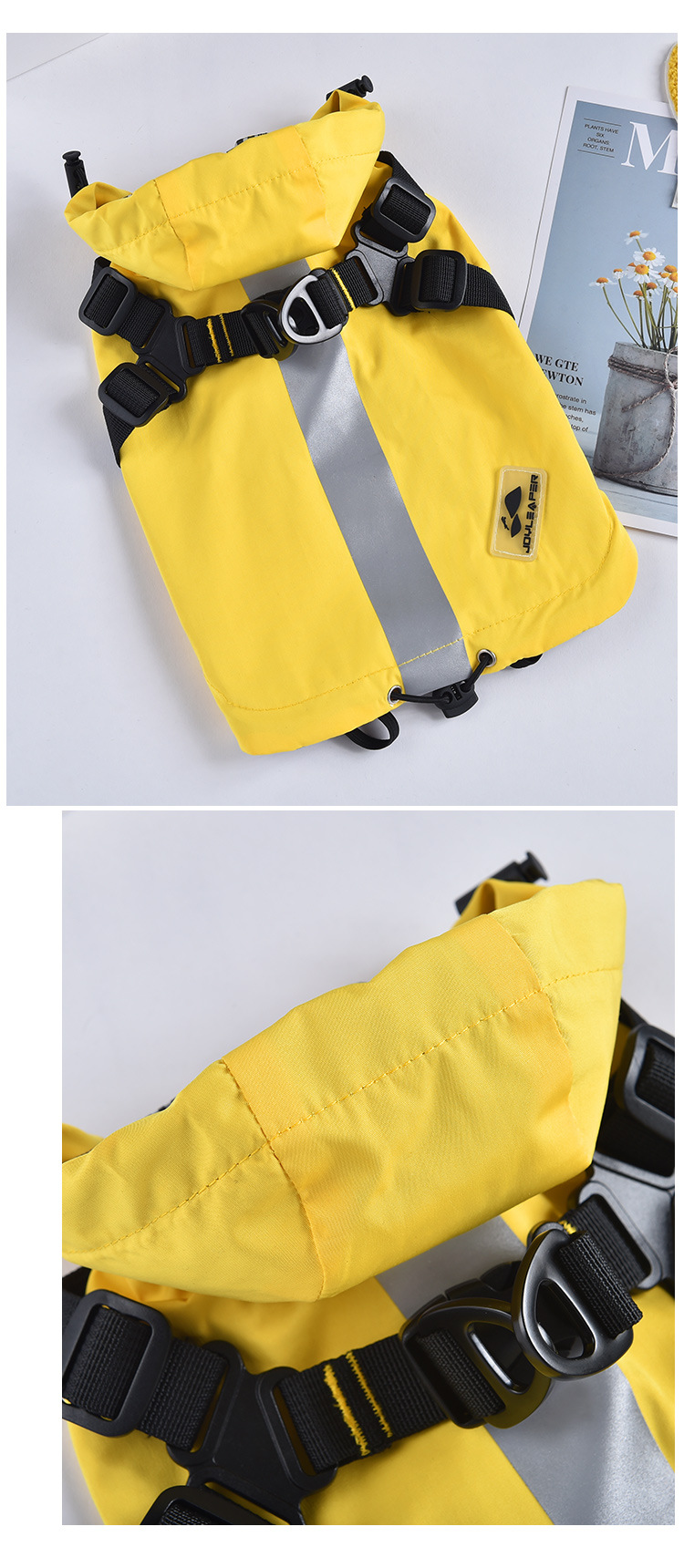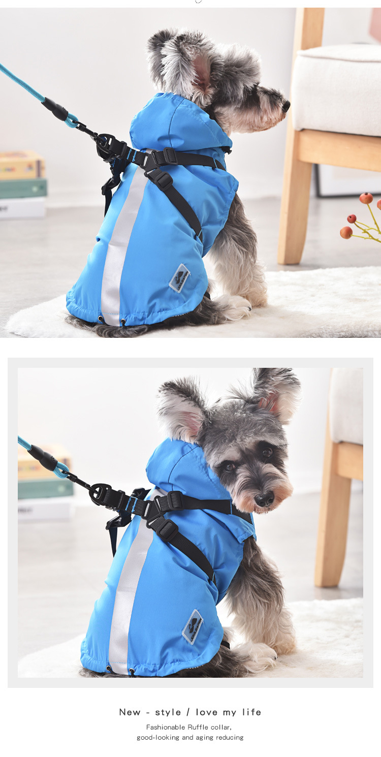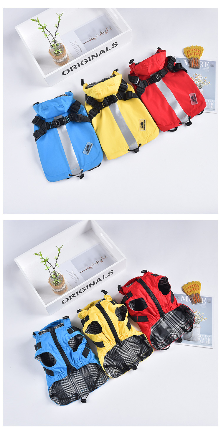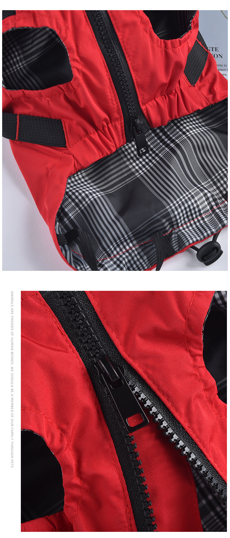 새로운 빨간색 반사 비옷 재고 있음 가슴과 등 모델 두 발 후드 개 옷 도매