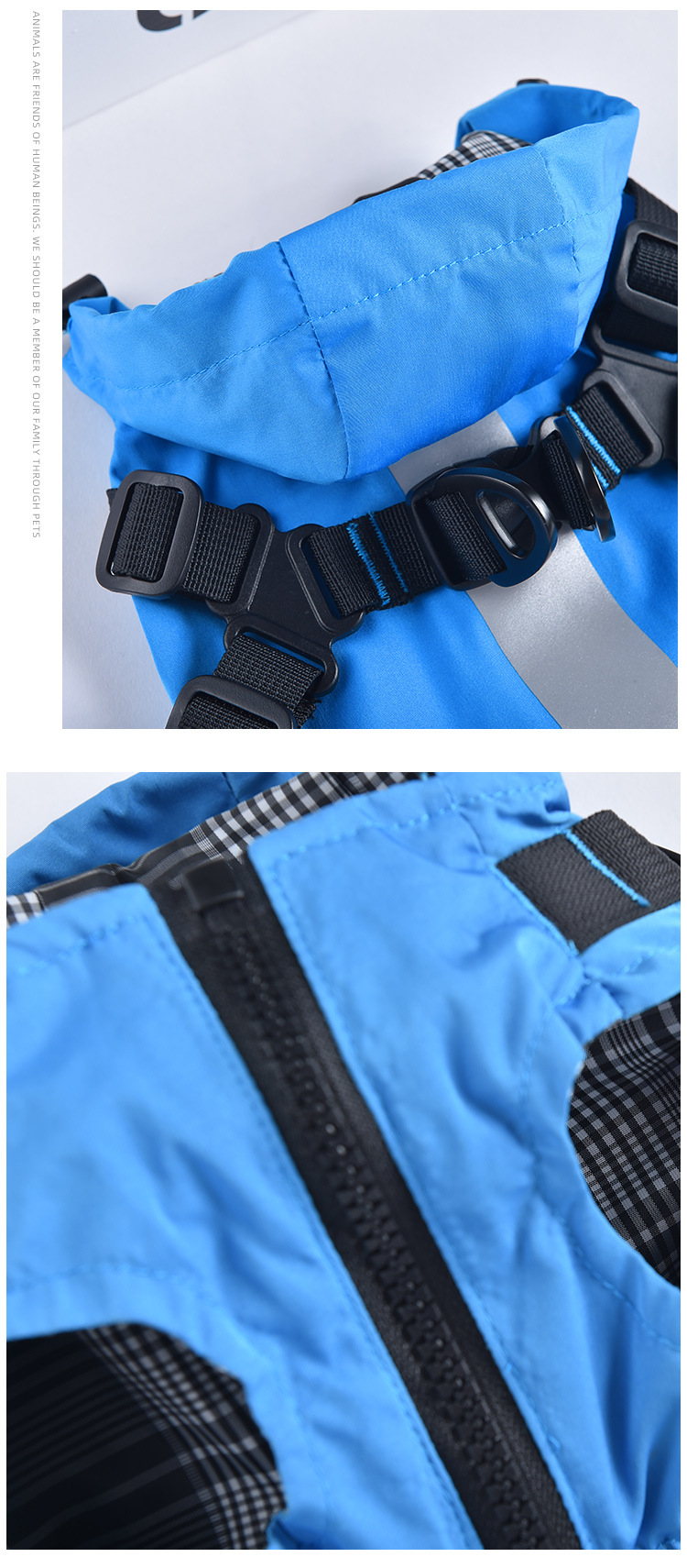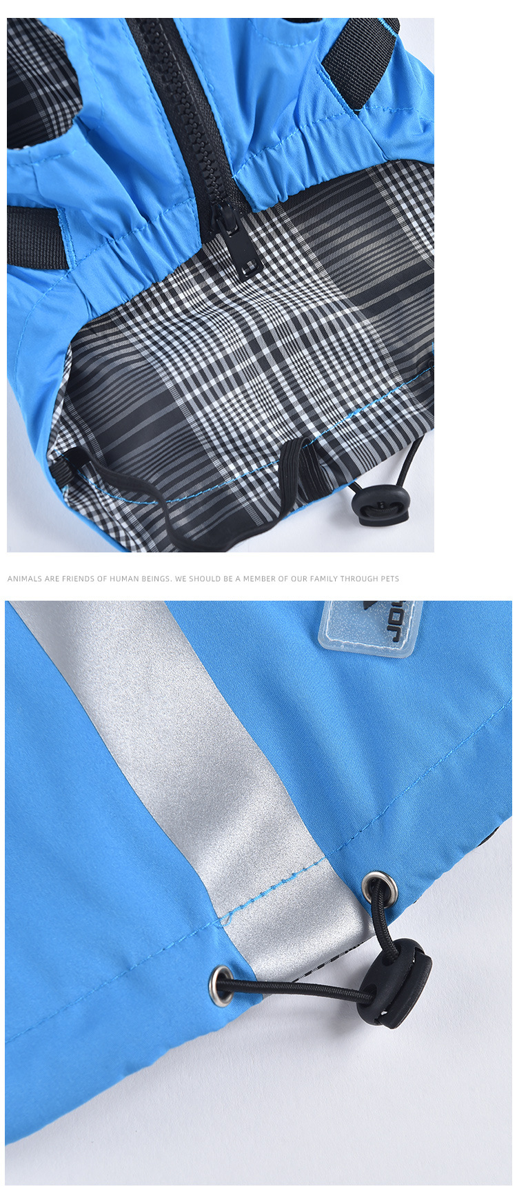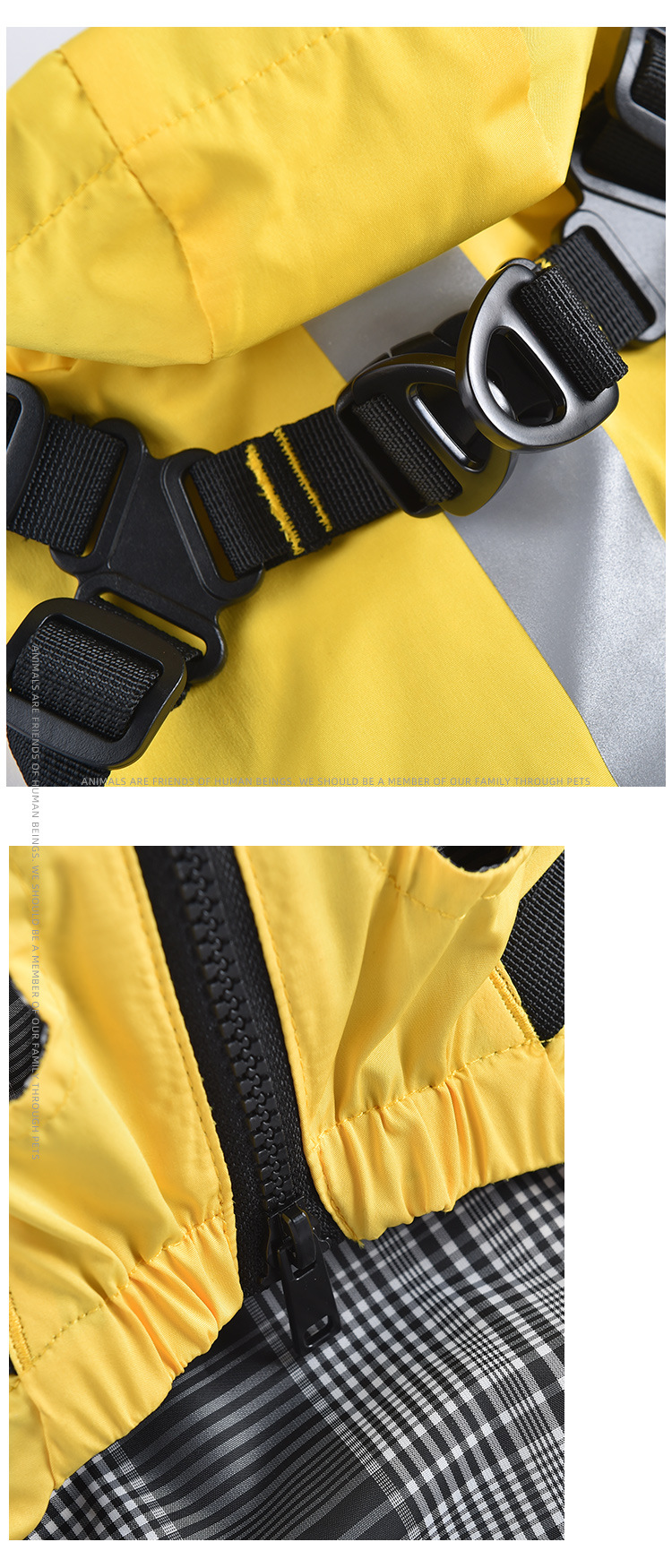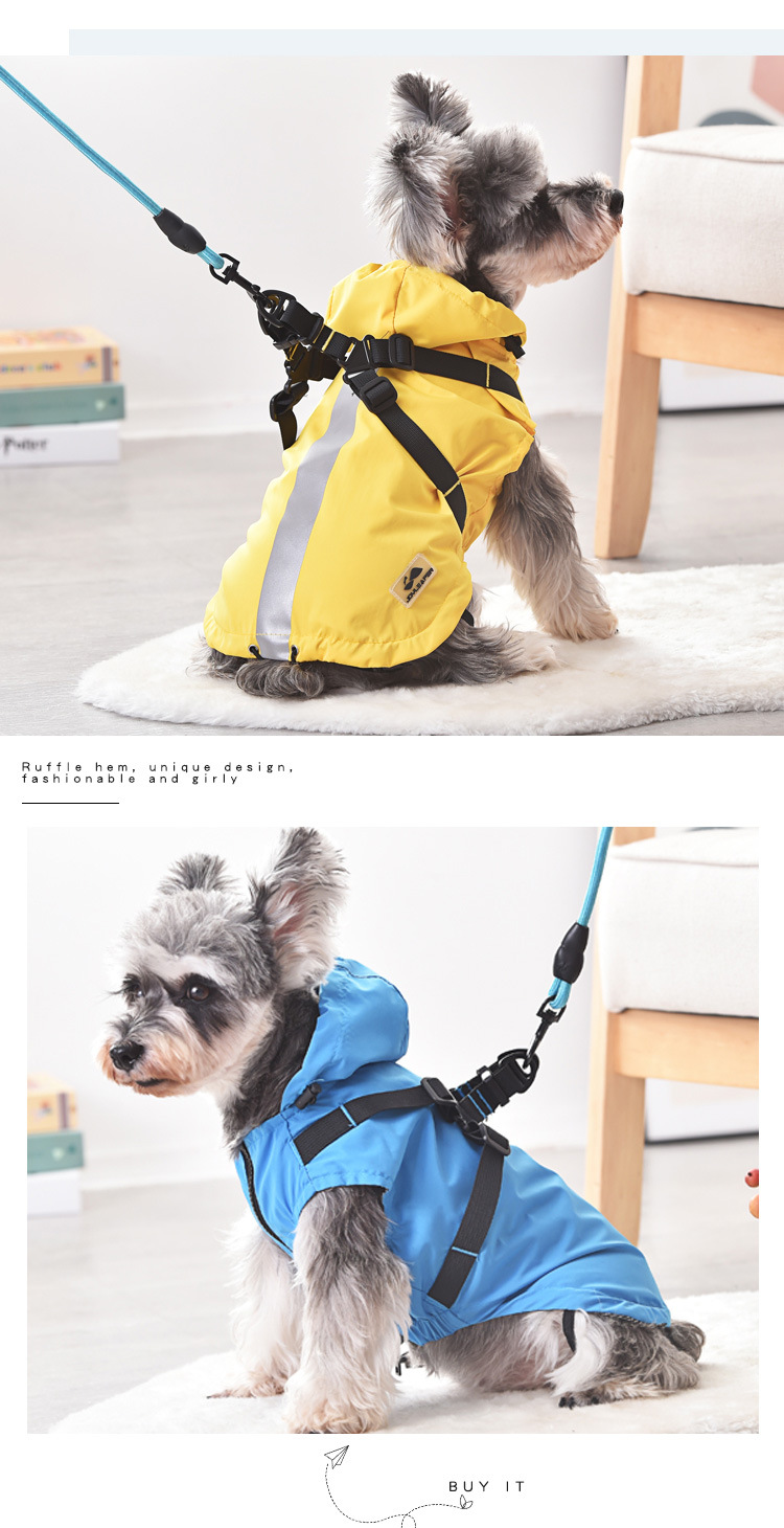 새로운 빨간색 반사 비옷 재고 있음 가슴과 등 모델 두 발 후드 개 옷 도매