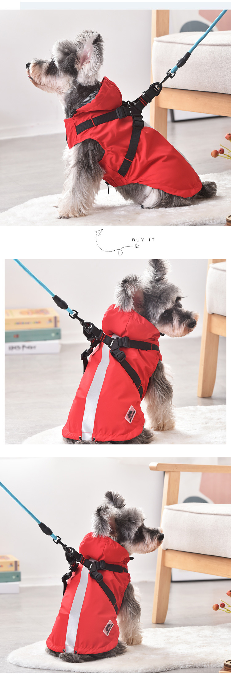 새로운 빨간색 반사 비옷 재고 있음 가슴과 등 모델 두 발 후드 개 옷 도매스토어 가기