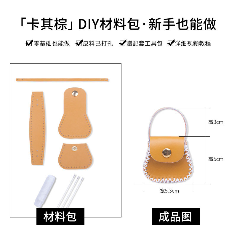 • 2 층 카키 다크 브라운 동전 가방 [재료 가방]
