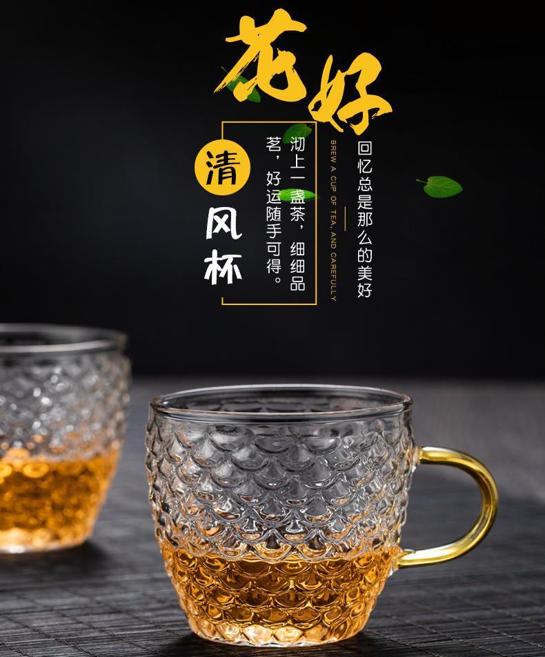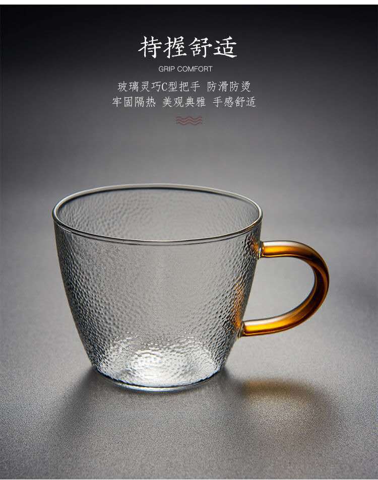 공장 공급 망치 패턴 작은 찻잔 손잡이 찻잔 마스터 컵 내열 유리 쿵푸 차 세트 일본식 유리스토어 가기