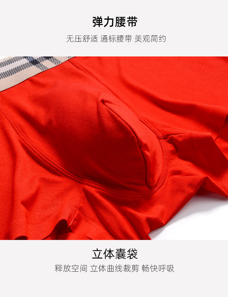 공장 직접 남성 속옷 빨간 생활 년 원활한 모달 통기성 남성 속옷 4 코너 바지 남성용 재고스토어 가기