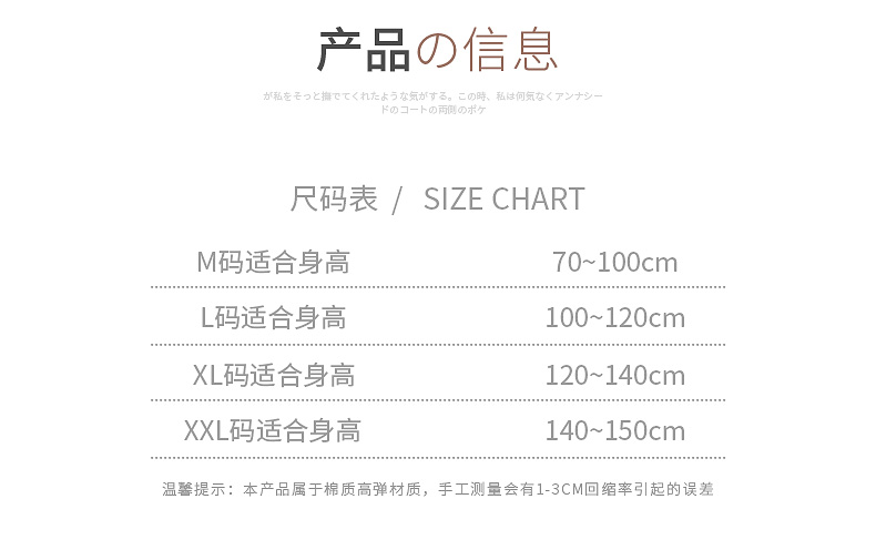 • XXL 코드 권장 높이 140-155