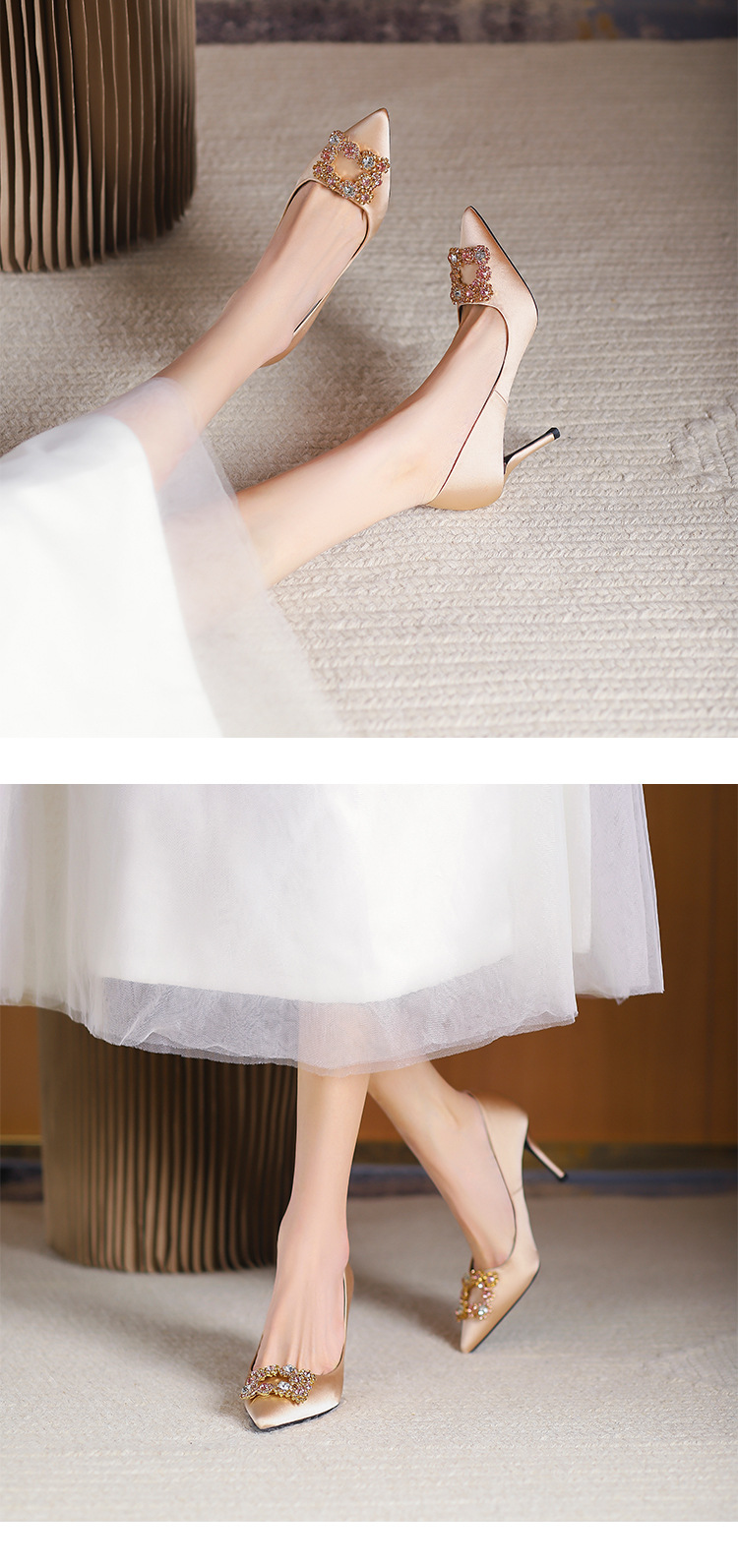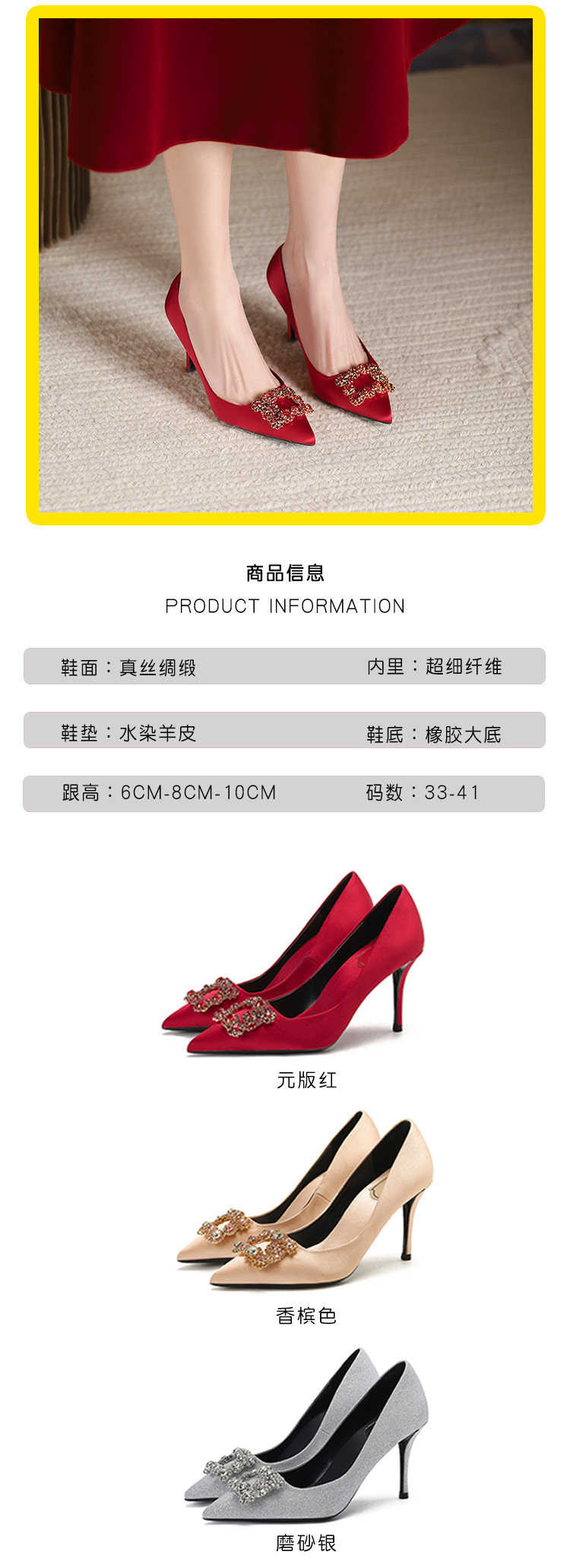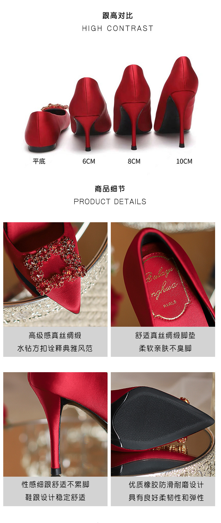 2025 새로운 유럽과 미국의 레드 하이힐 웨딩 슈즈 스틸레토 힐 라인스톤 포인팅 신부 들러리 입 얕은 웨딩 슈즈 여성스토어 가기