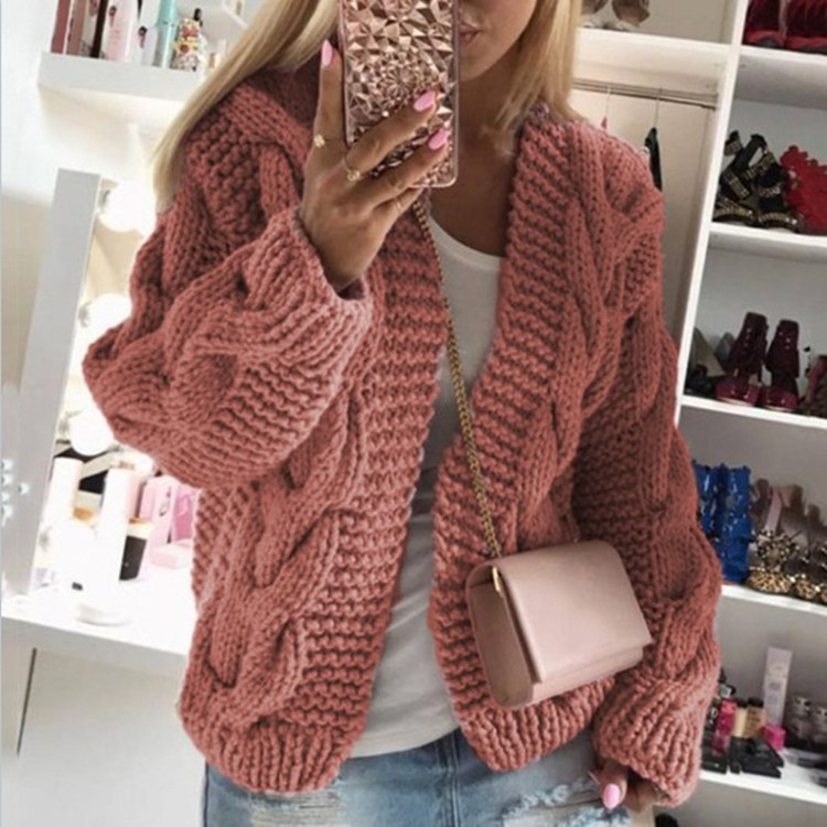 2025 가을 겨울 신상품 아마존 인기 트위스트 니트 모자 가디건 유럽풍 단색 두꺼운 니트 스웨터 여성용스토어 가기