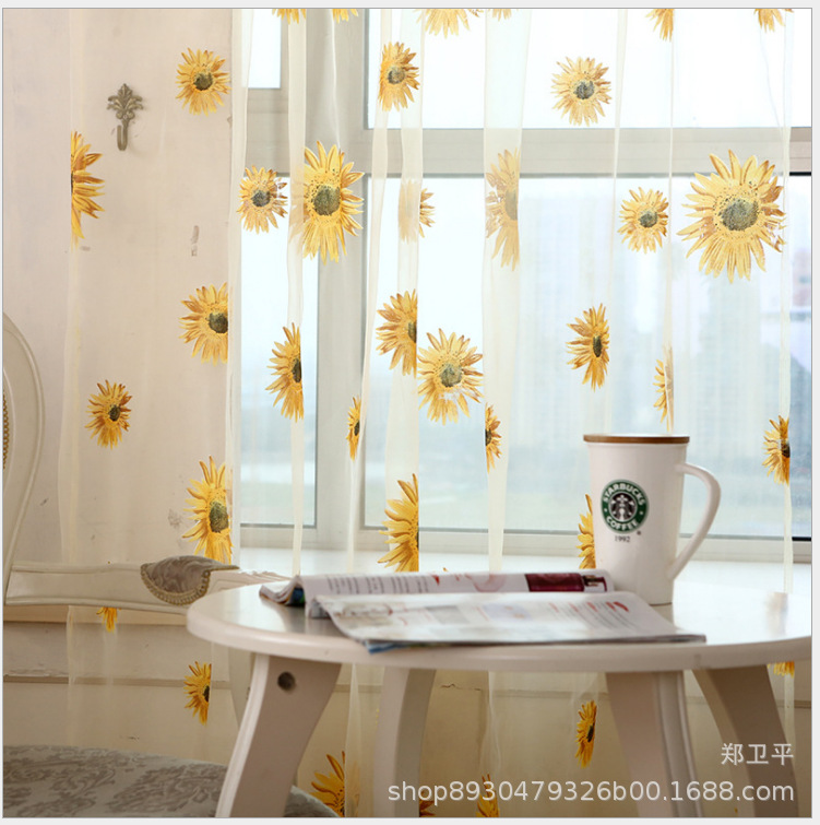 공장 직접 인쇄 해바라기 창 화면 오프셋 인쇄 커튼 투명 통기성 거즈 커튼 발코니 거실 국경 아마존스토어 가기