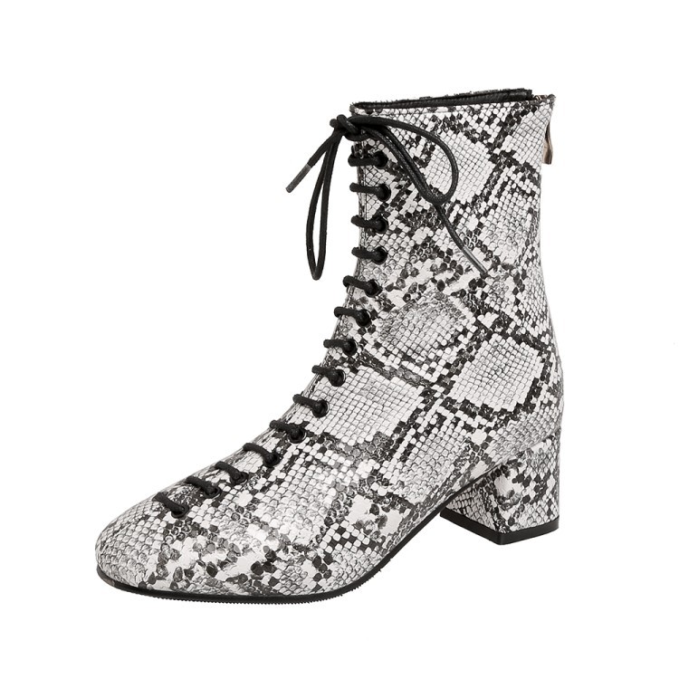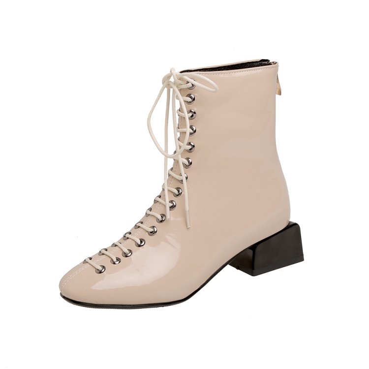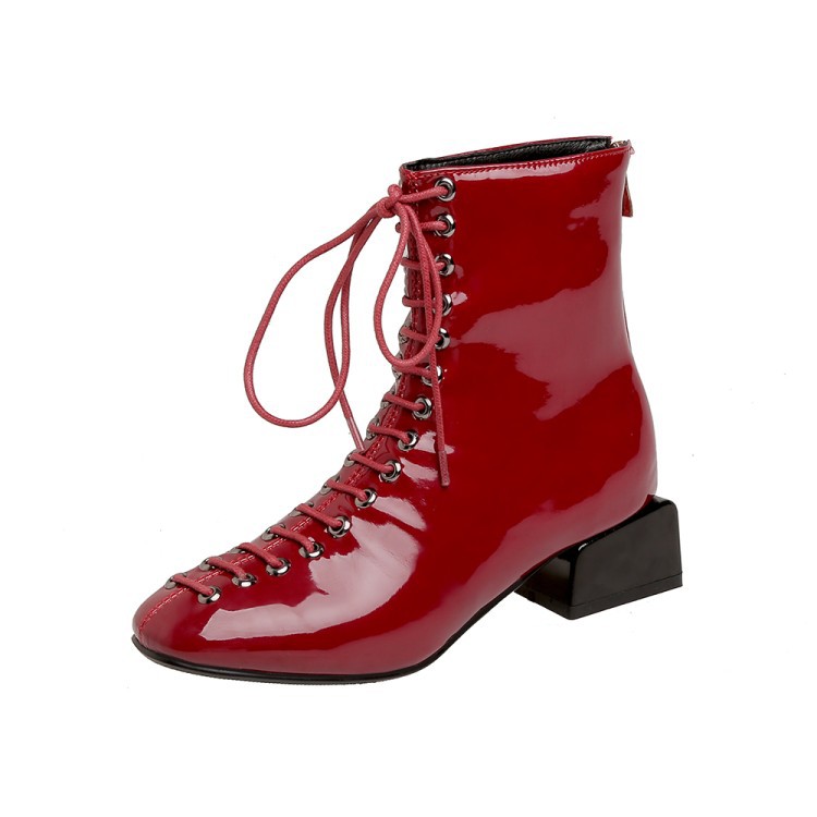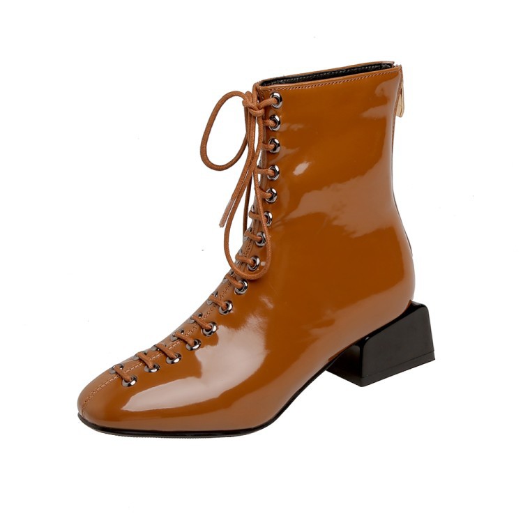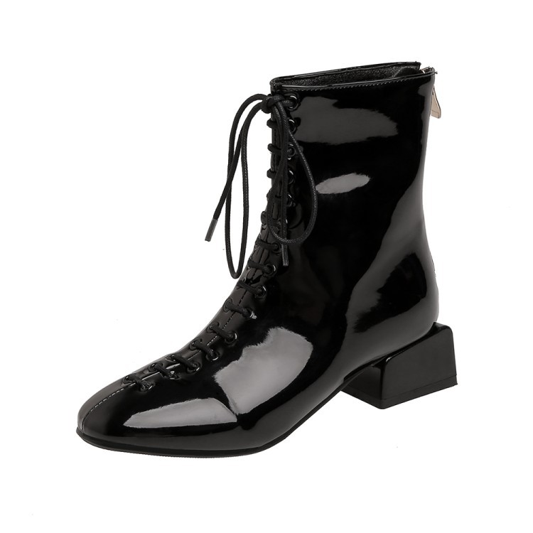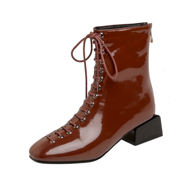 크로스-국경 대외 무역 여성의 플러스 사이즈 가죽 부츠 가을과 겨울 새로운 크로스 스트랩 짧은 배럴 마틴 부츠 밝은 가죽 뿌리 낮은 굽 여성 부츠