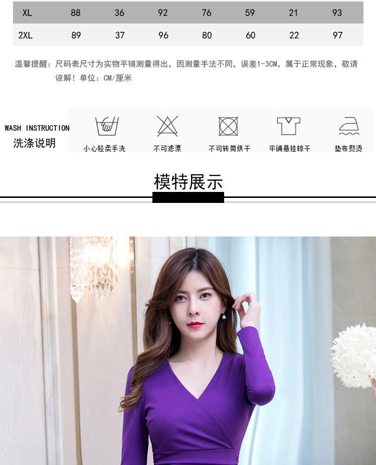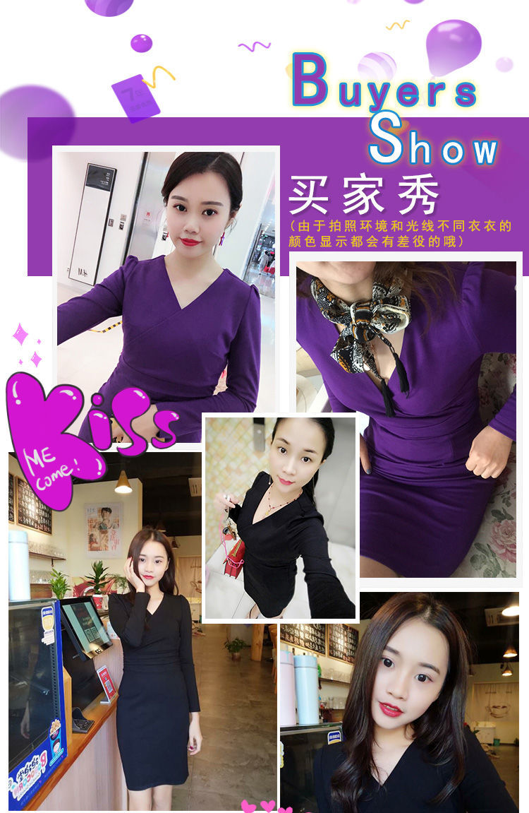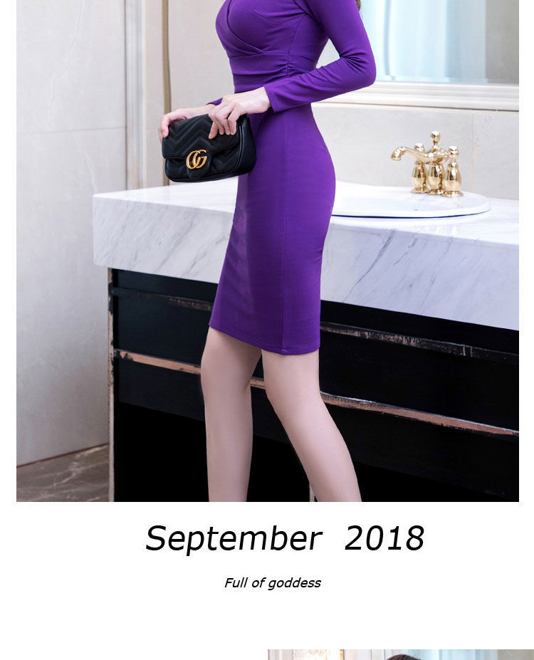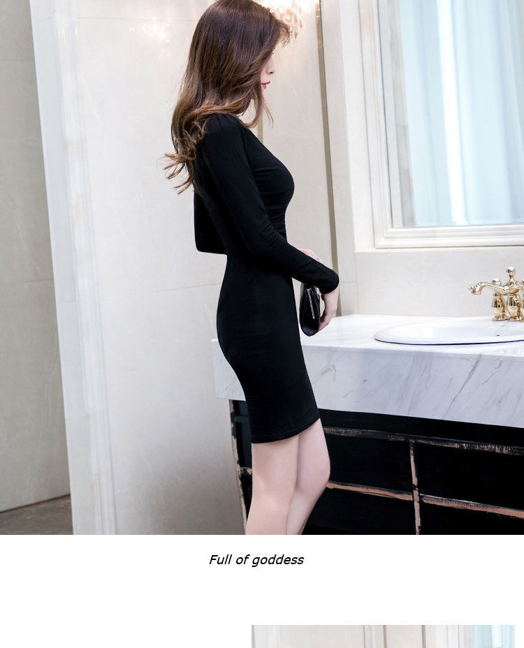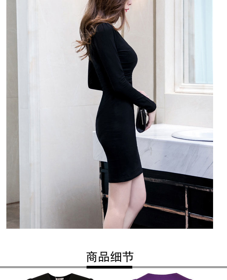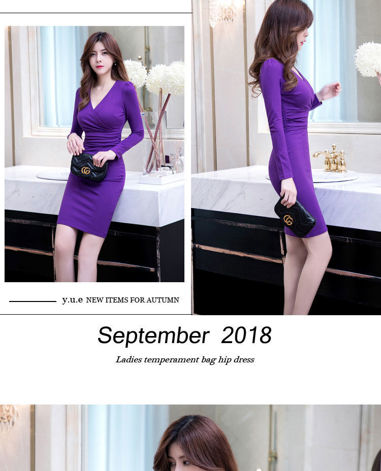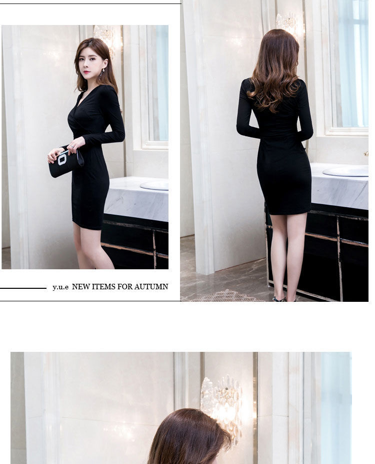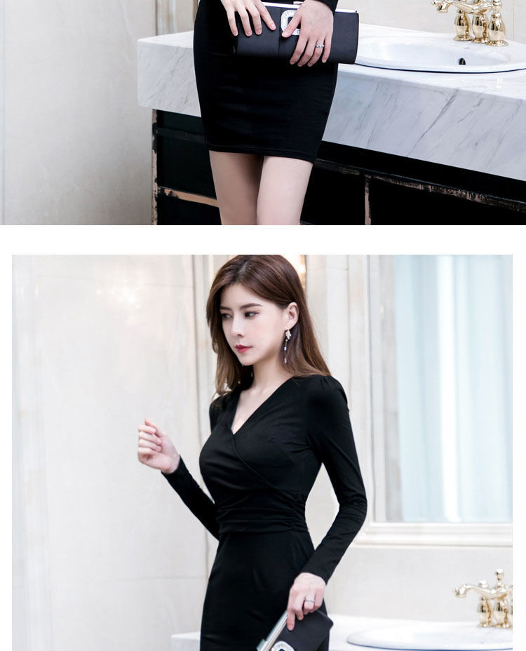 가을과 겨울 새로운 한국식 2020 긴팔 브이넥 슬림핏 힙베이스 아우터 중간 길이 OL 프로페셔널 원피스
