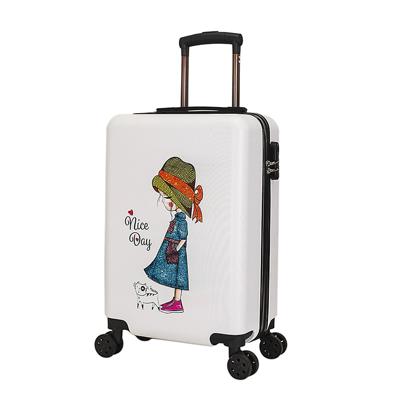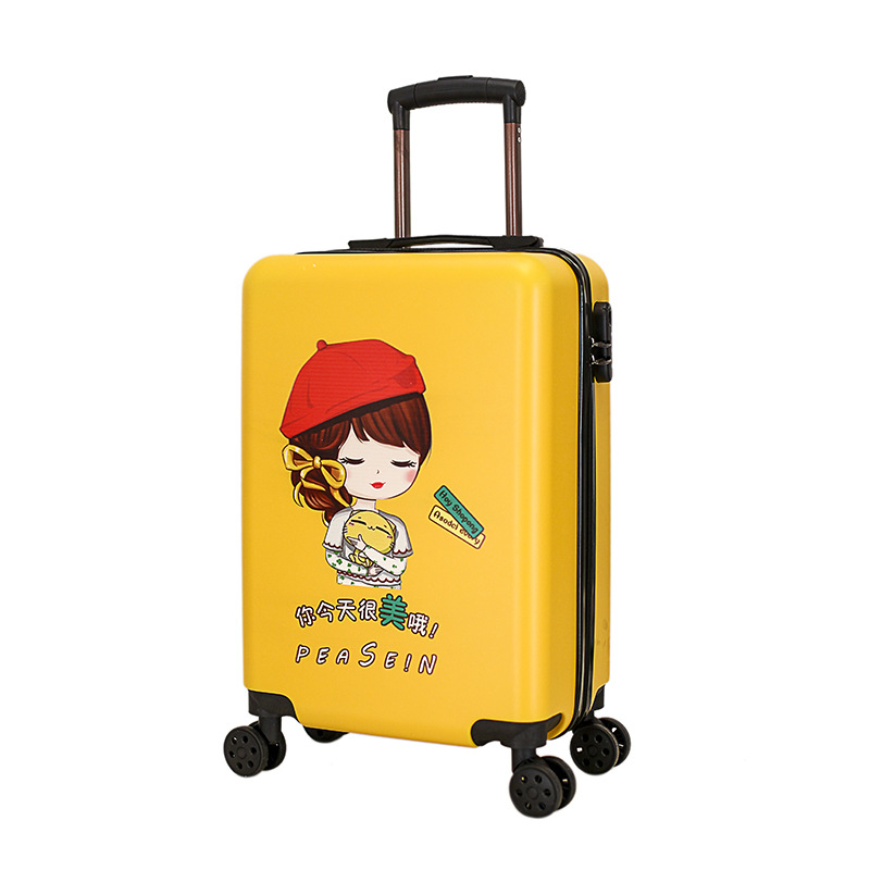 만화 다채로운 여행 가방 20 인치 사용자 정의 로고 트롤리 케이스 여성 보드 케이스 짧은 거리 수하물 학교 은행스토어 가기