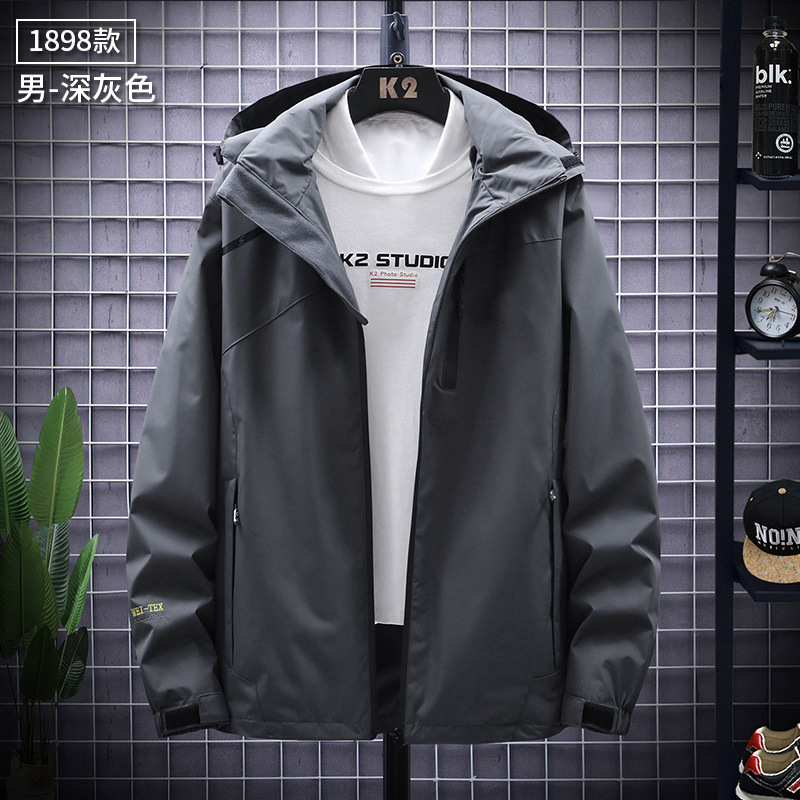2023 봄과 가을 얇은 야외 재킷 방수 통기성 단일 레이어 등산 의류 그룹 구매 후드 단색 재킷 남성용스토어 가기