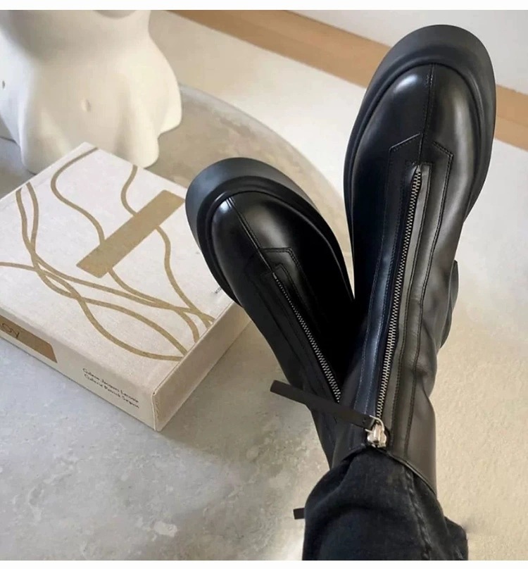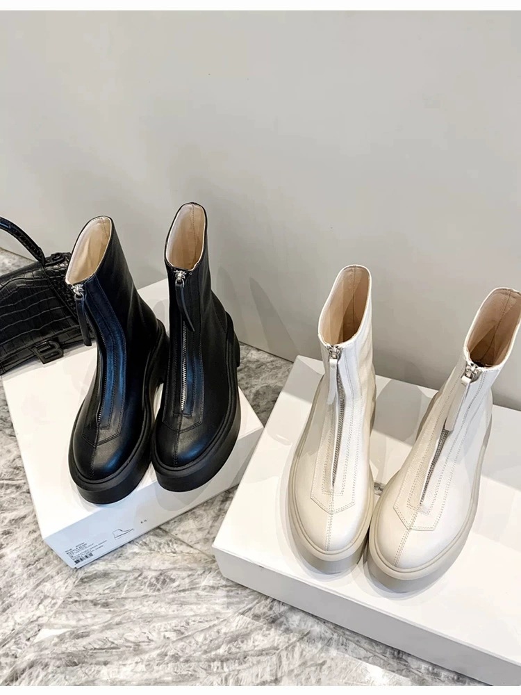Liu Wen의 같은 스타일 부츠 2025 가을 앞 지퍼 정품 가죽 두꺼운 밑창 마틴 부츠 여성용 영국 스타일 플랫폼 높이 짧은 부츠스토어 가기