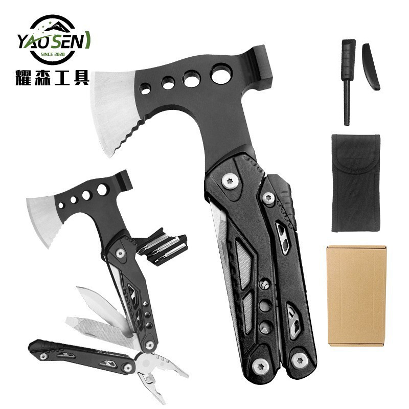 공장 재고 다기능 도끼 접이식 스테인레스 스틸 도끼 망치 휴대용 접이식 생존 도구 야외 다기능 도끼