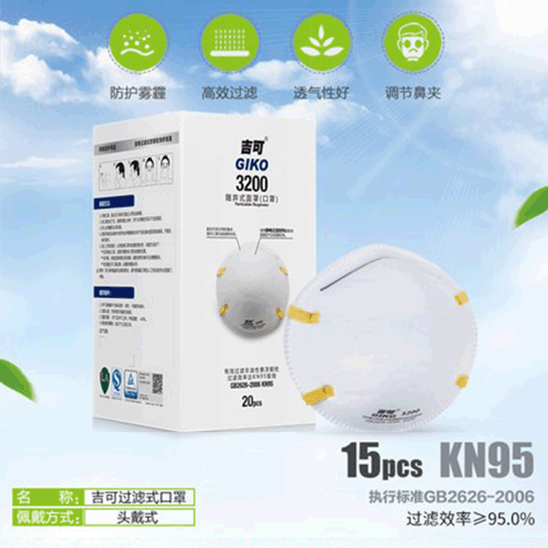Jiko 3200 먼지 마스크 KN95 표준 산업 보호 먼지 미스트 일회용 3 층 필터 헤드 장착스토어 가기