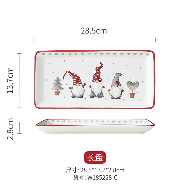 직사각형 크리스마스 접시 북유럽 세라믹 플랫 플레이트 주방 가정용 식기 양각 얕은 접시 창조적 인 서양 스테이크 접시