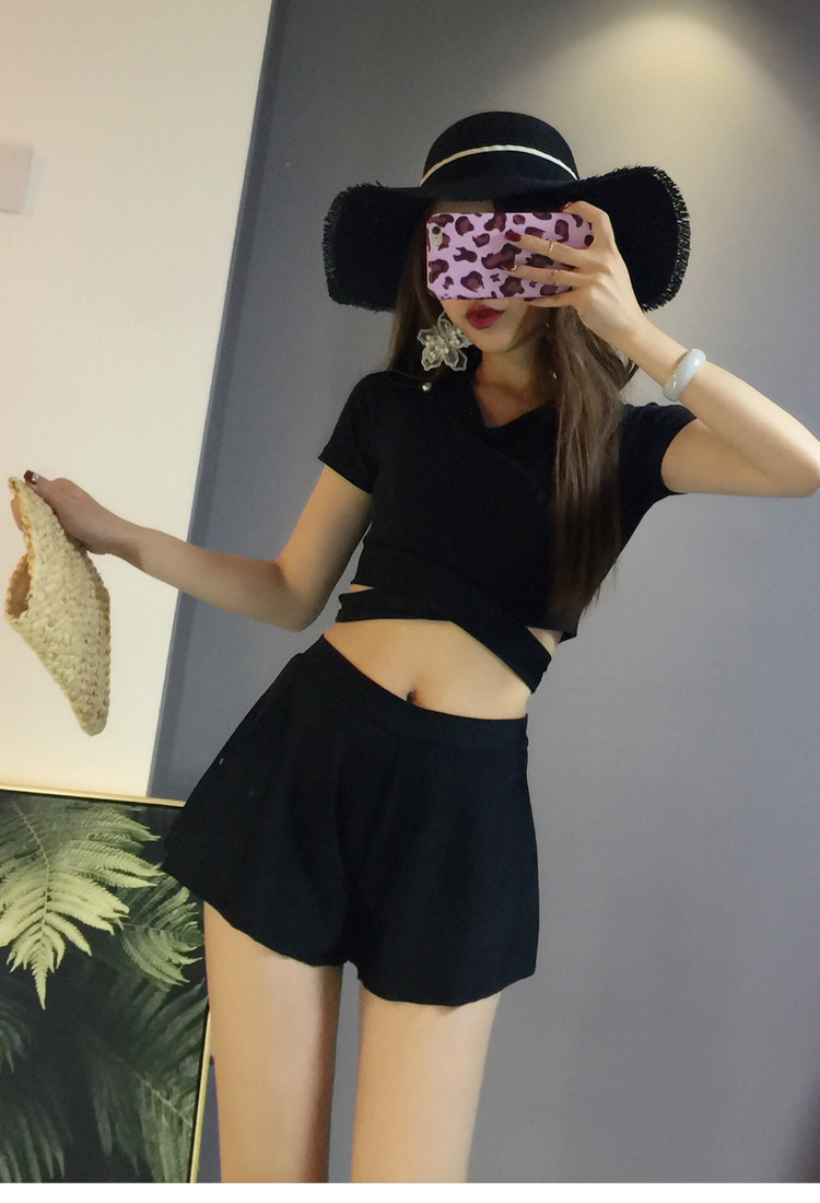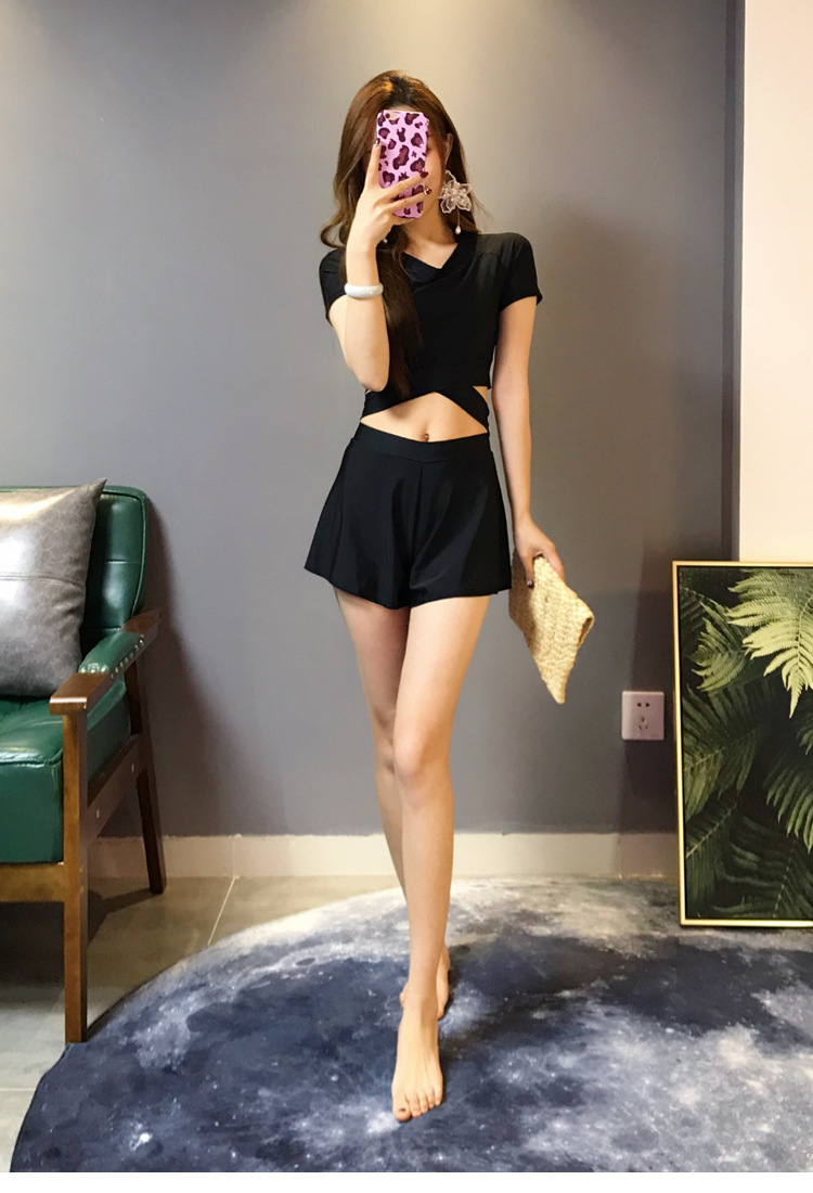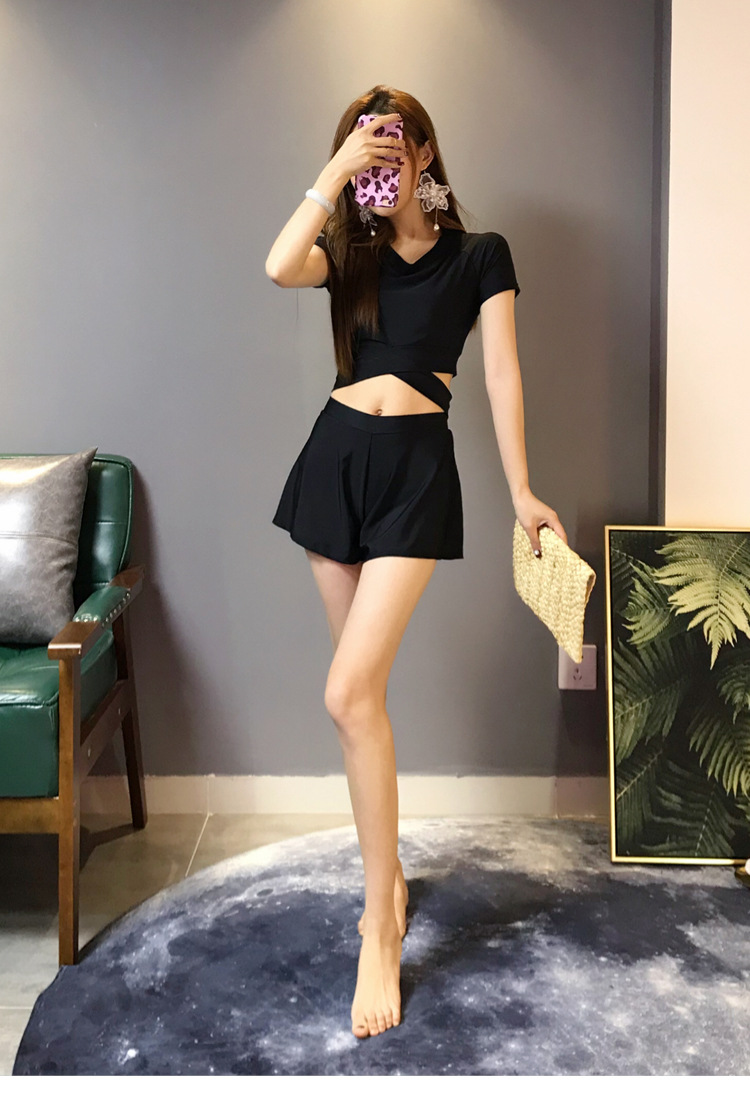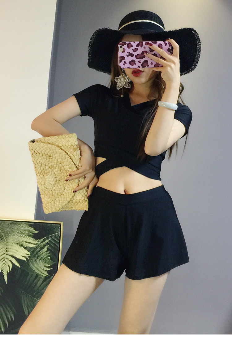 공장 직접 새로운 수영복 여성용 스플릿 쓰리피스 세트 보수적 인 배꼽 덮기 슬리밍 섹시한 작은 가슴 개더링 수영복 여성