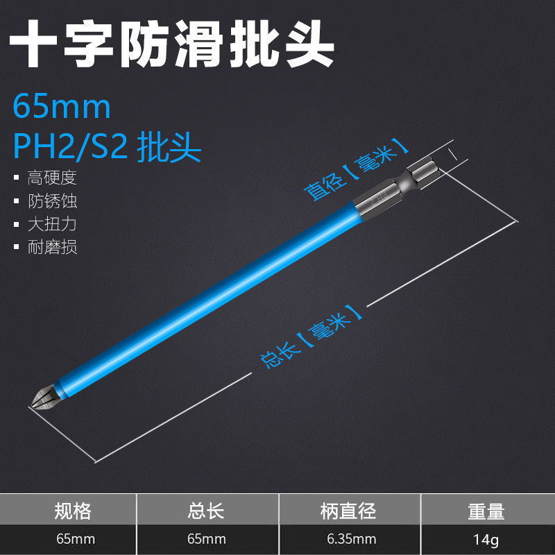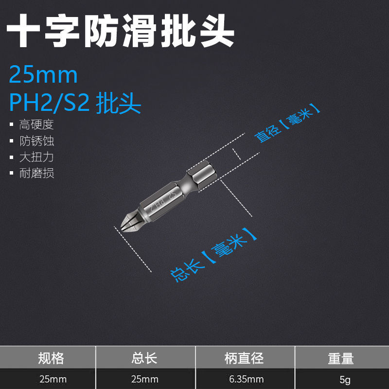 S2防滑批头电动风批咀电动螺丝刀头强磁批头PH2防滑十字批头