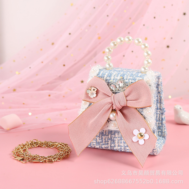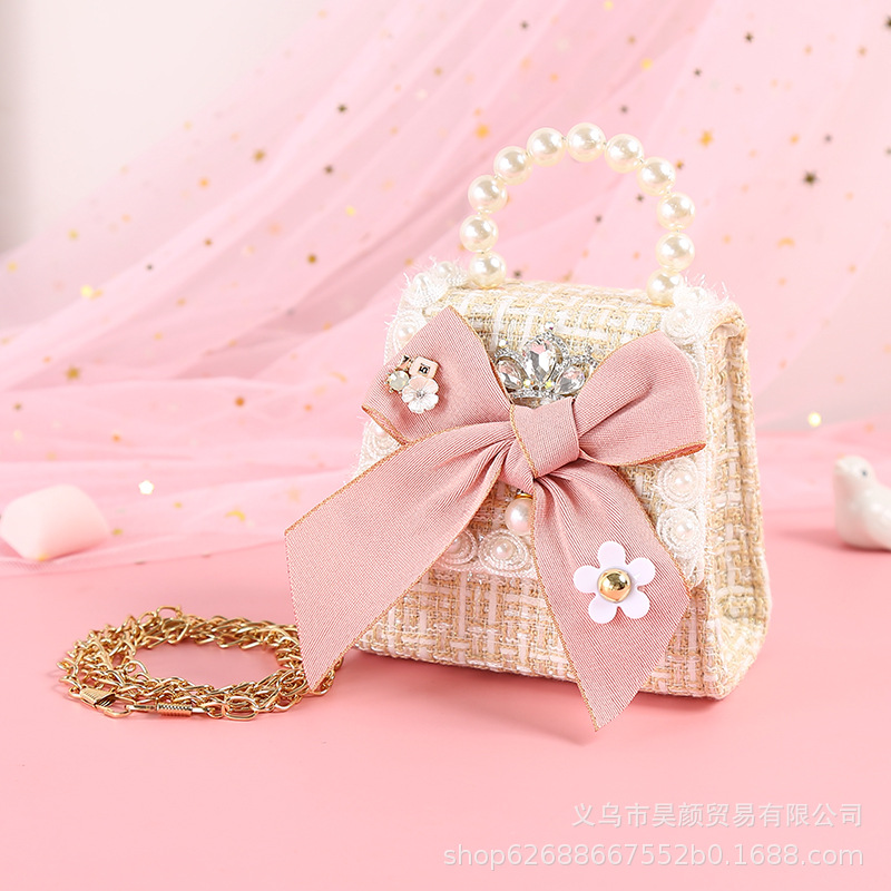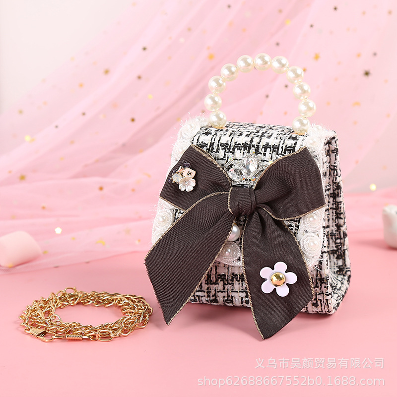 2021 샤넬 스타일 새로운 다채로운 활 스타일 귀여운 휴대용 진주 크로스 바디 어린이 가방 820스토어 가기