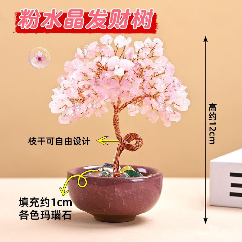 • 천연 핑크 크리스탈 머니 트리