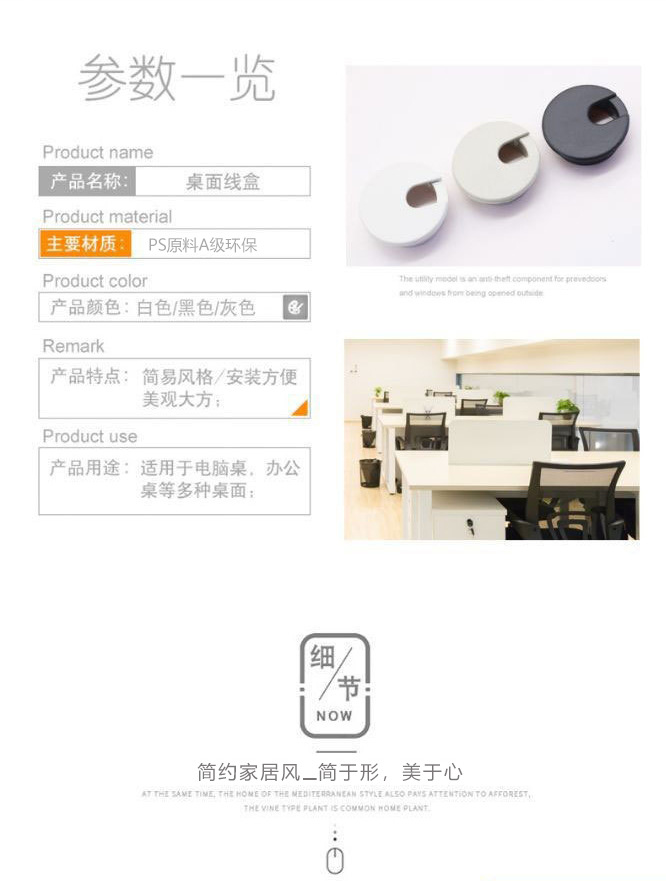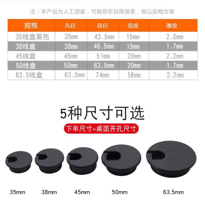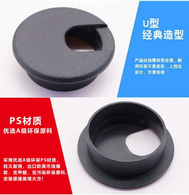 38홀 컴퓨터 데스크탑 U자형 케이블 관통 박스 커버, 45홀 원형 장식 링, 방진 케이블 관통 박스 커버, 가구용스토어 가기
