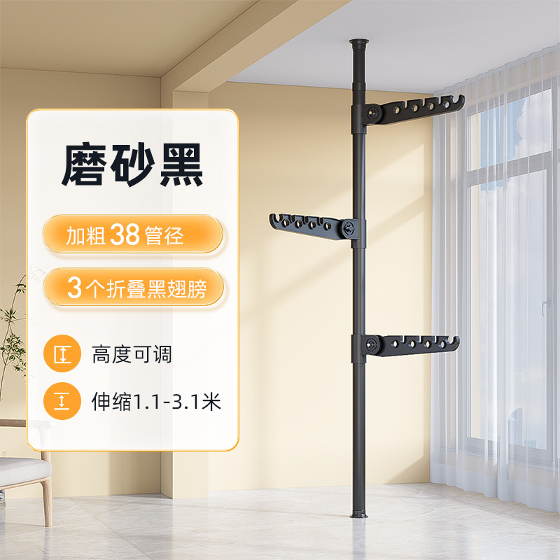 • [굵고 두꺼운 38 직경] 단일 극 3 접힌 검은 날개