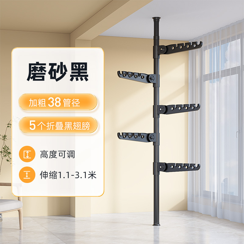 • [굵고 두꺼운 38 직경] 단일 극 5 접힌 검은 날개