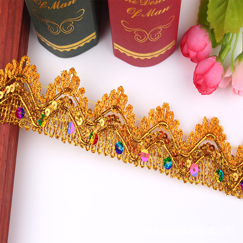 义乌花边 金色亮片花边织带 彩色花边 DIY软饰花边辅料 服装辅料