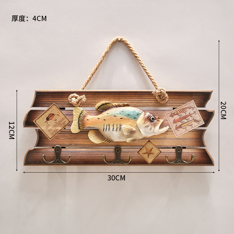 지중해 스타일 나무 매달려 물고기 미국 국가 벽 장식 물고기 공예 코트 후크 큰 물고기 장식스토어 가기