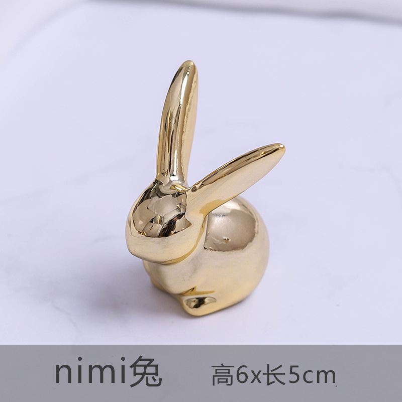 장식품 북유럽 세라믹 창조적 인 토끼 미니 토끼 엘크 황금 사진 소품 동물 창 작은 장식품스토어 가기