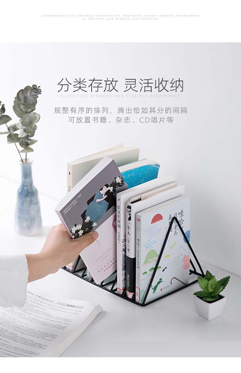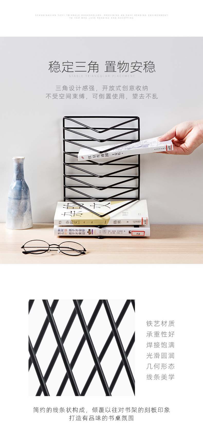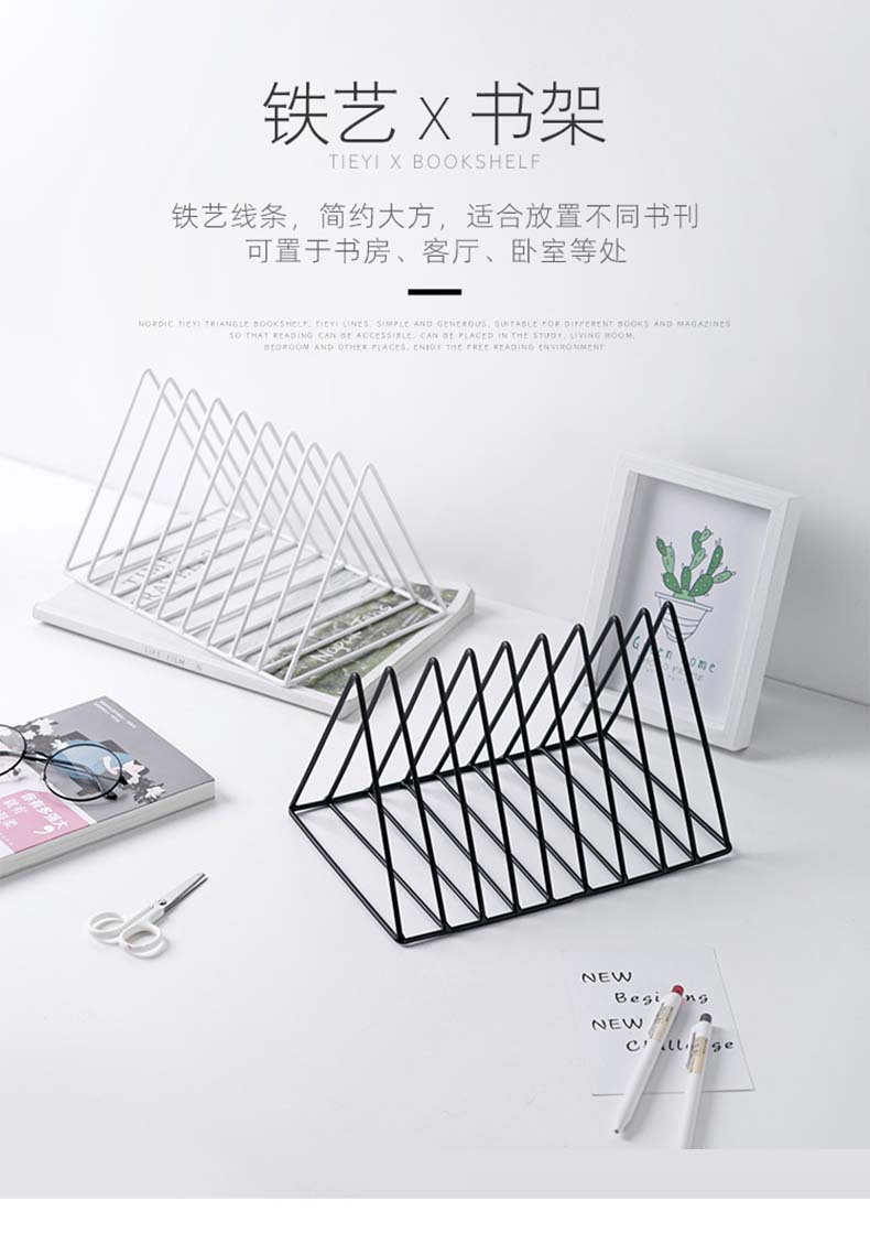 桌面铁艺三角书立创意ins风书架 学生课桌书挡定制简约桌上整理架
