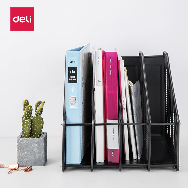 델리 78994 쿼드 러플 매거진 랙 금속 메쉬 철 파일 프레임/파일 홀더/스토리지 바/잡지 상자