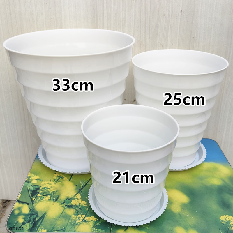초대형 나사형 모조 세라믹 화분 플라스틱 대형 화분 발코니 바닥에서 천장까지 이어지는 흰색의 두꺼운 대형 화분(팔레트 포함)