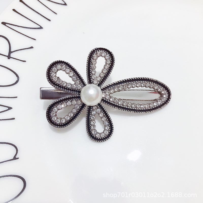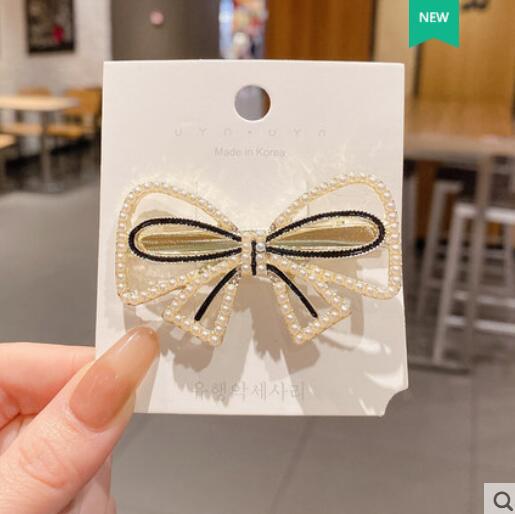 한국 패션 헤어 액세서리 활 진주 헤어 클립 포크 포크 모조 다이아몬드 오리 지폐 클립 네트 레드 걸 사이드 클립 머리 장식 도매스토어 가기