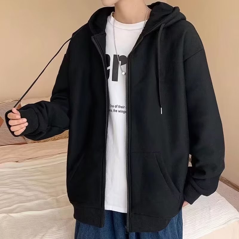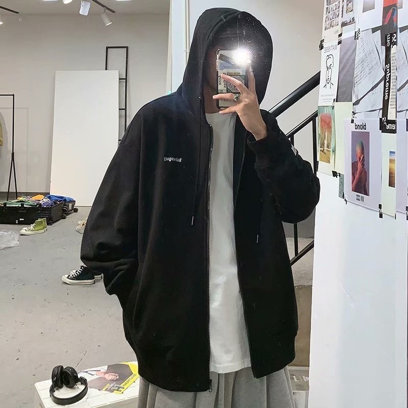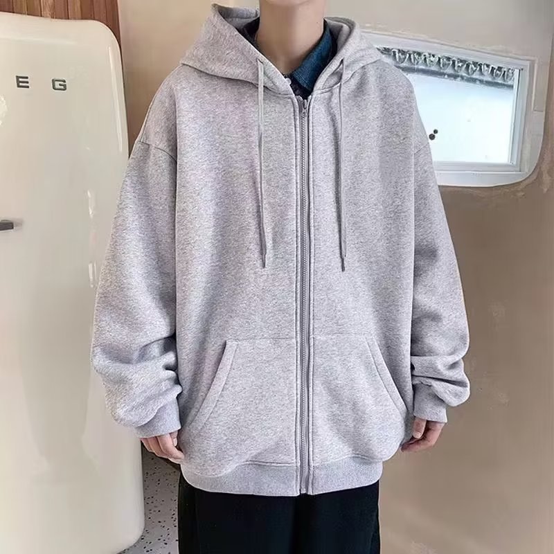 2024 새로운 얇은 스웨트 셔츠 남자 후드 지퍼 홍콩 스타일 캐주얼 루즈 스포츠 재킷 여름 유행 탑스토어 가기