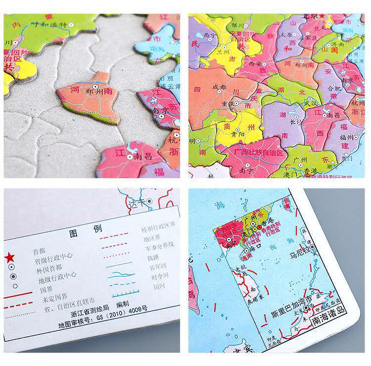 중국지도 직소 퍼즐 초등학생을위한 어린이 종이 직소 퍼즐 인지 유치원 조기 교육 퍼즐 중국 행정 구역 직소 퍼즐스토어 가기
