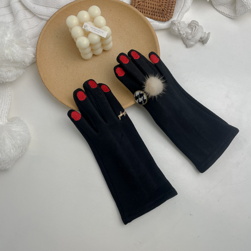 인 일본과 한국의 매니큐어 드 벨벳 손가락 장갑 창조적 인 따뜻한 사이클링 플러스 벨벳 장갑 여성 재고 도매