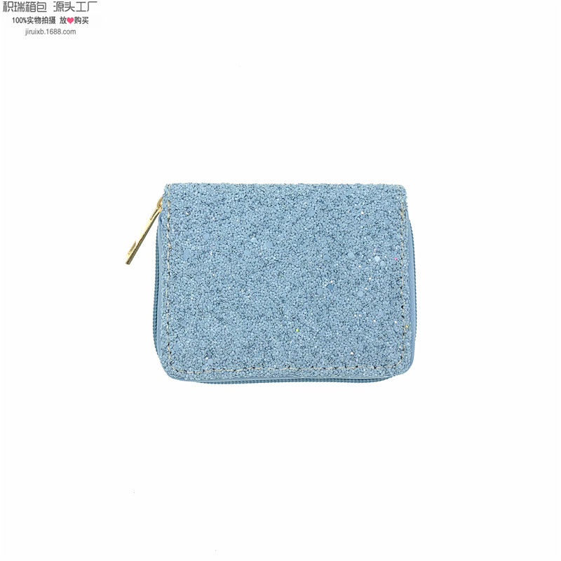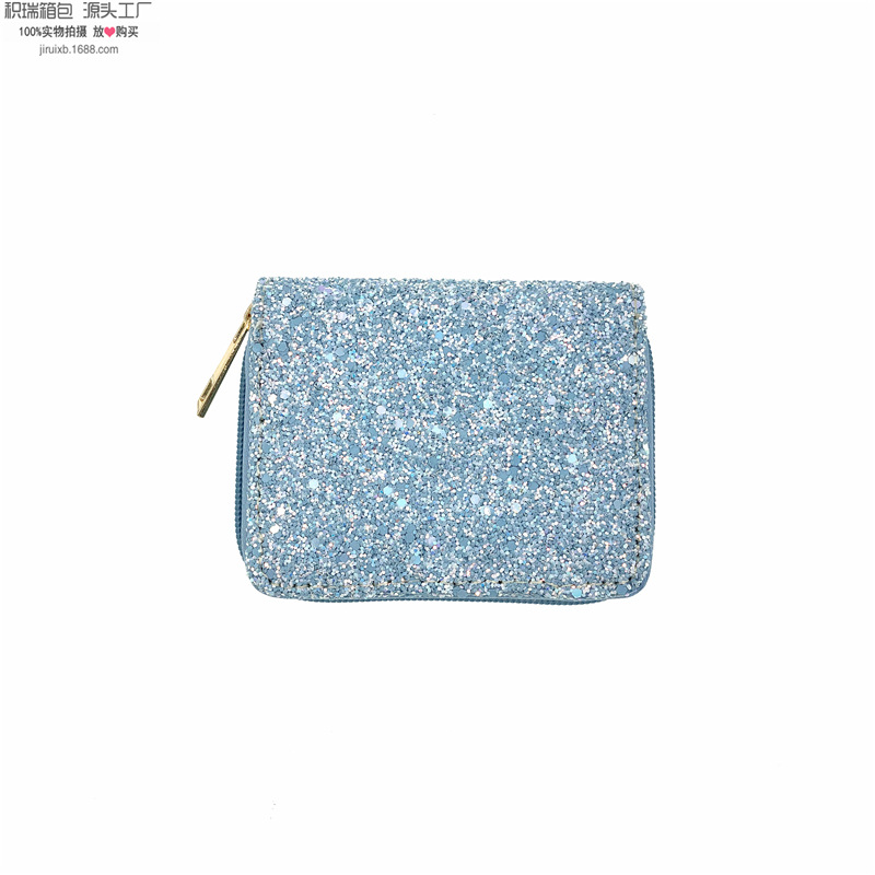 뜨거운 판매 유럽과 미국 스타일 다채로운 반짝이 PU 지갑 학생 여성 짧은 지퍼 가방 동전 지갑 ID 가방 재고스토어 가기