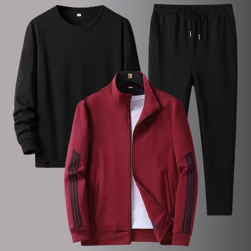 중년 및 노인 스포츠 세트 남자의 봄과 가을 캐주얼 아빠 코트 플러스 사이즈 스포츠웨어 중년 3 종 세트스토어 가기