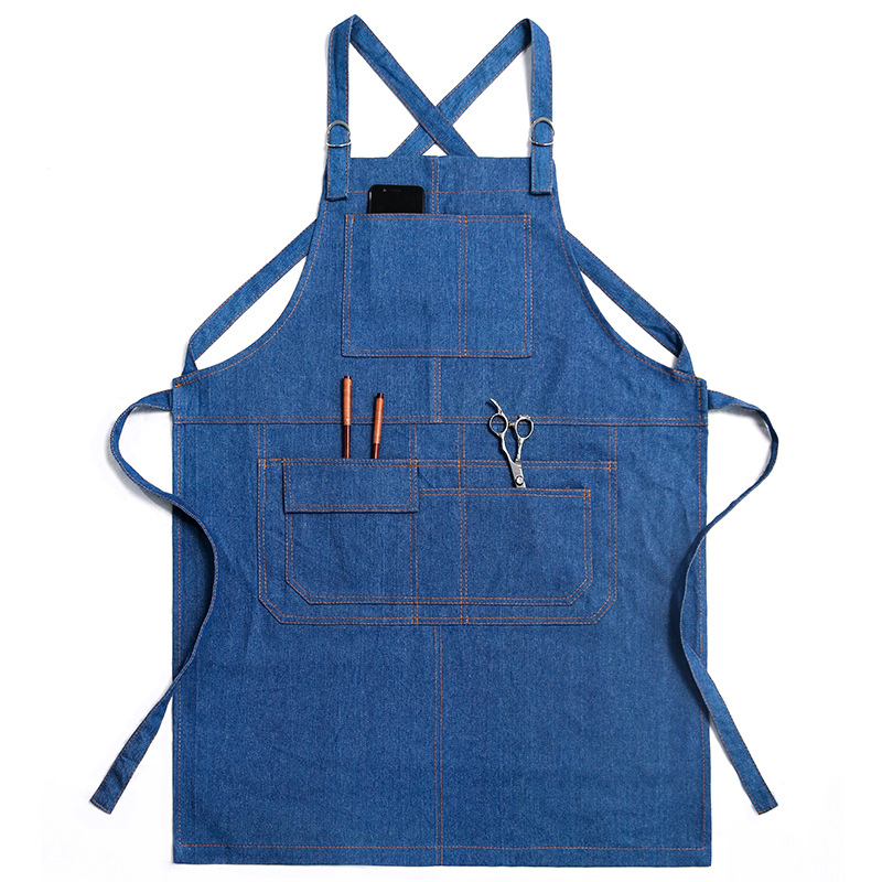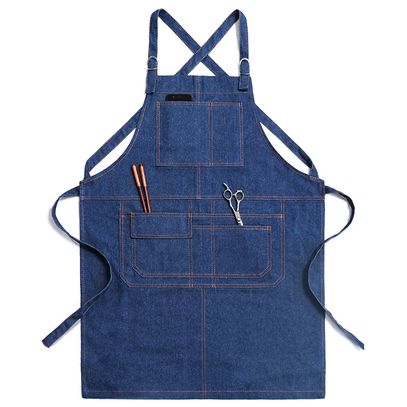 앞치마 데님 사용자 정의 로고 커피 숍 우유 차 가게 미용 네일 아트 중국 레스토랑 요리사 남성과 여성의 작업복 인쇄