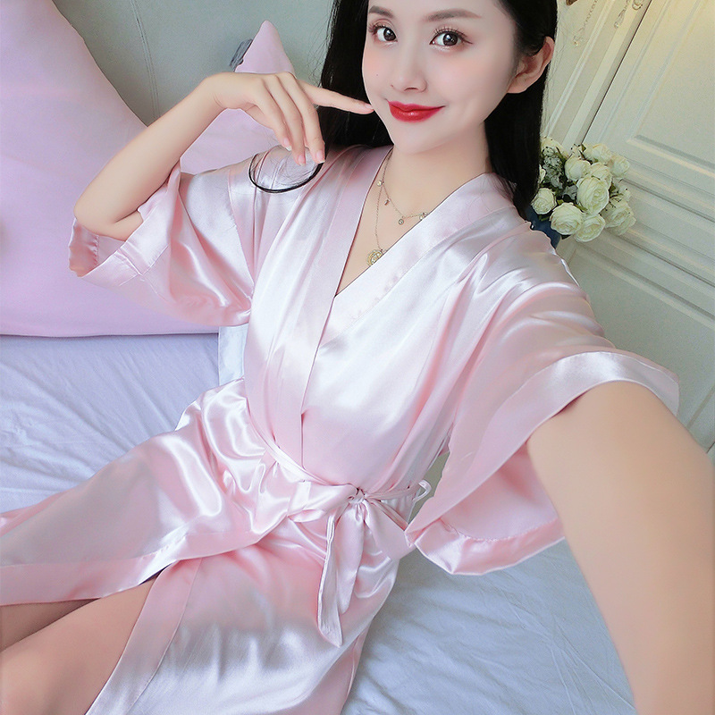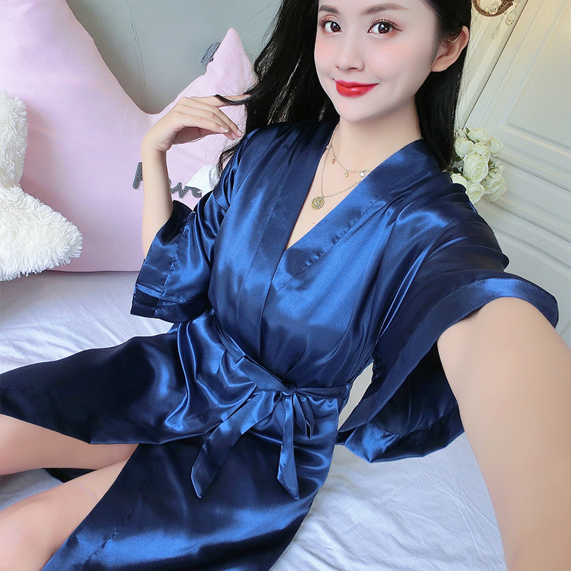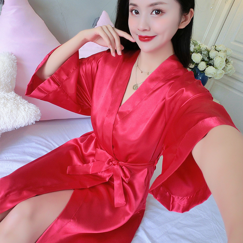 나이트가운 여성 봄 여름 가을 섹시한 웨딩 아이스 실크 기모노 파자마 신부 플러스 사이즈 신부 목욕 가운 아침 가운 홈 옷스토어 가기