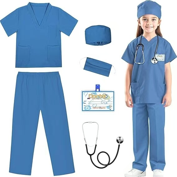 • 외과 가운 라운드 넥 + 시뮬레이션 청진기