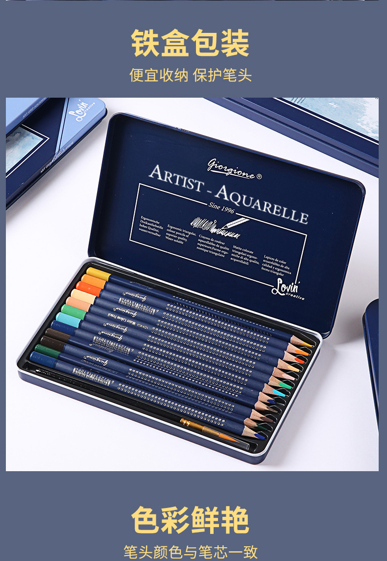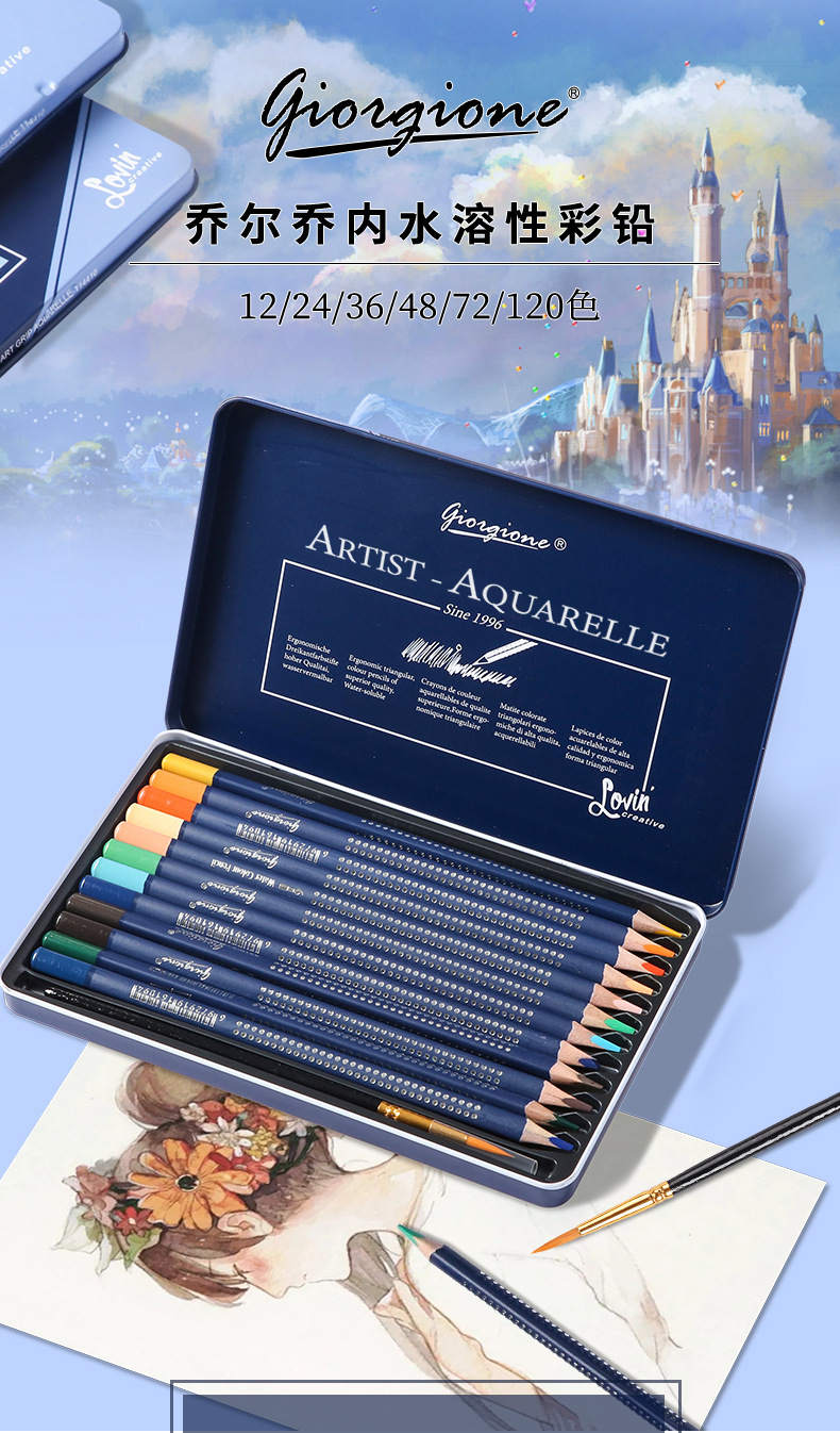 조르조네 수용성 컬러 연필 세트 72 색 두꺼운 삼각형 로그 그림 어린이 컬러 리드 도매스토어 가기