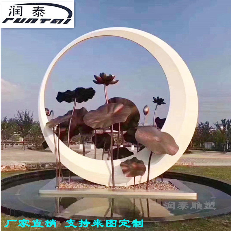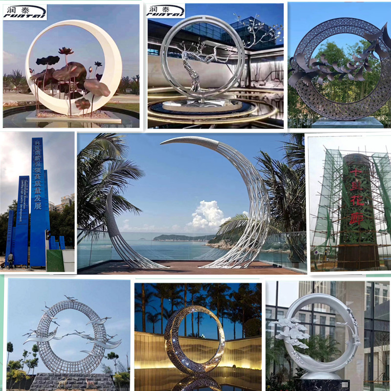 스테인레스 스틸 링 달 조각 부동산 판매 사무실 워터 스케이프 스퀘어 스테인레스 스틸 조각 정원 금속 조각