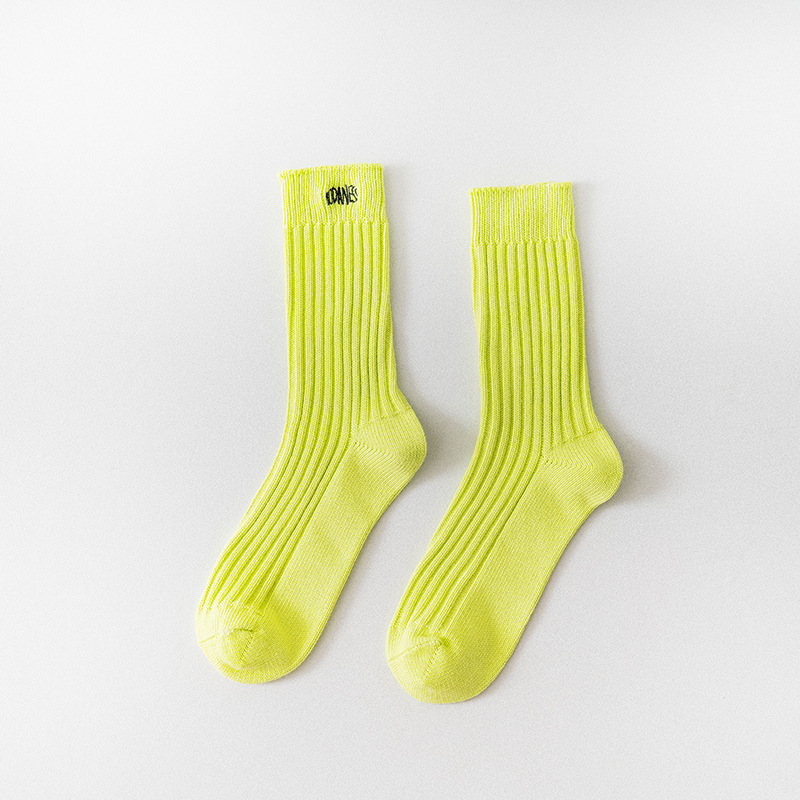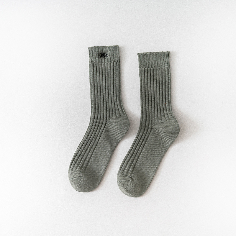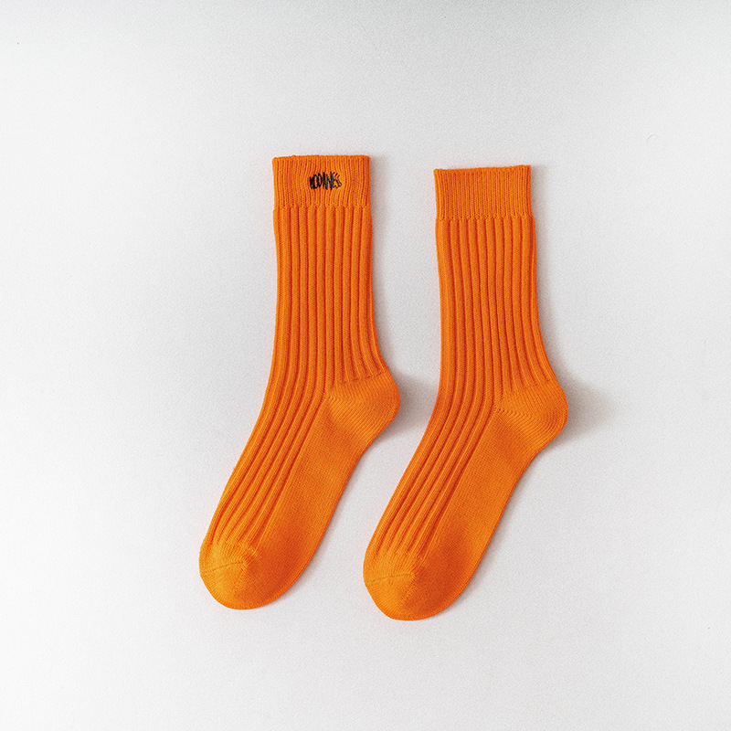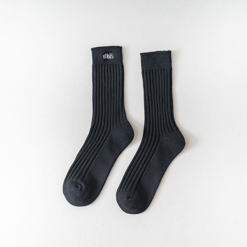 유웬레와 같은 스타일의 이중 바늘 두꺼운 실로 자수된 글자 남성용 중목 양말, 다용도 트렌디한 단색 하이탑 면 양말, 패셔너블스토어 가기