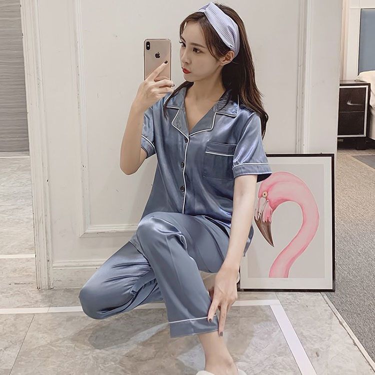폭발 대외 무역 새로운 여자의 실크 안감 플러스 사이즈 긴 소매 카디건 잠옷 실크 주거 옷 투 피스 세트스토어 가기